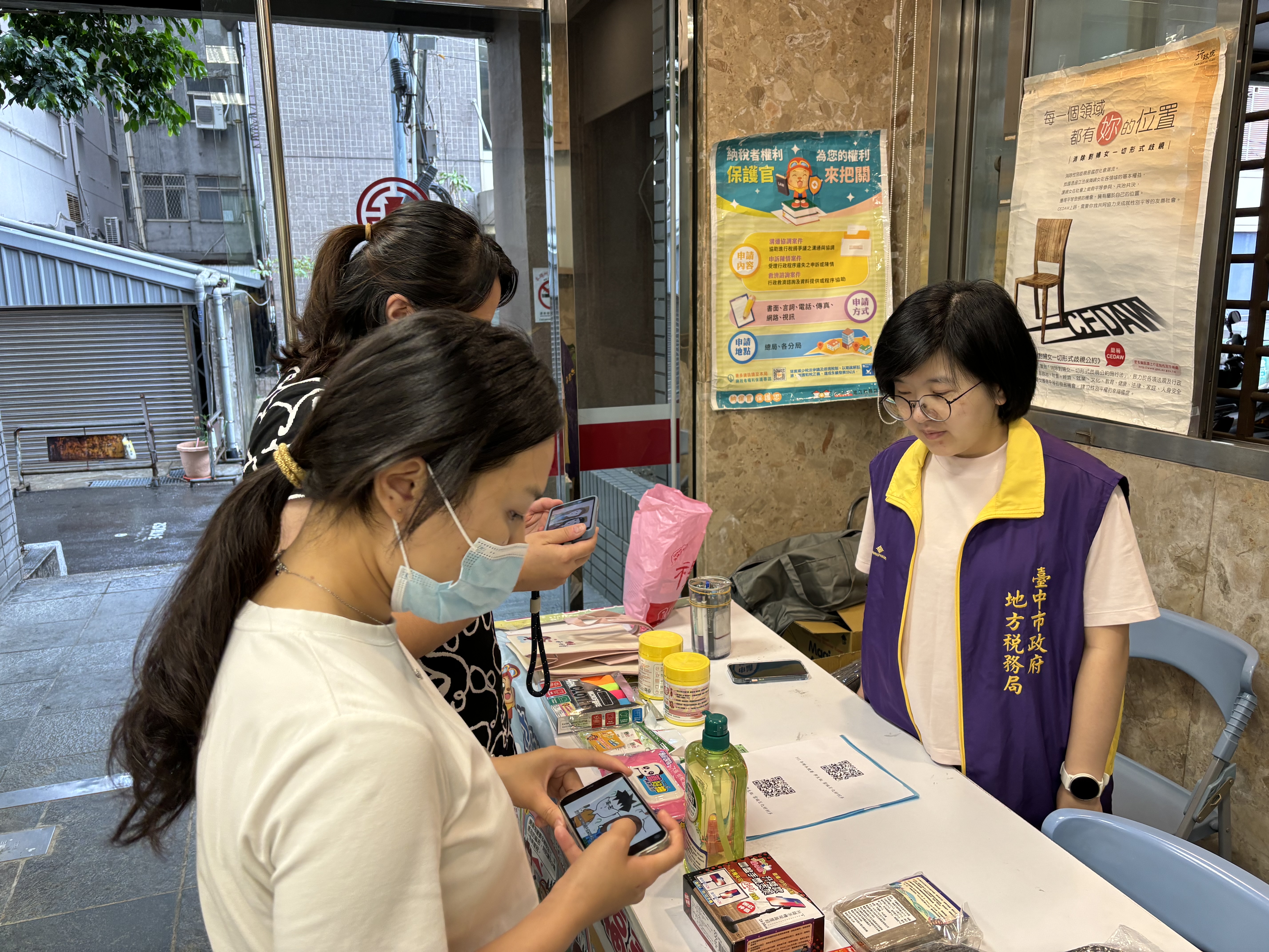 現場分送各稅宣導手冊及提供稅務諮詢服務,張貼納稅者權利保護法等相關宣傳海報,並加強宣導本局設置納保官,受理稅捐爭議協調,確保納稅者權益。