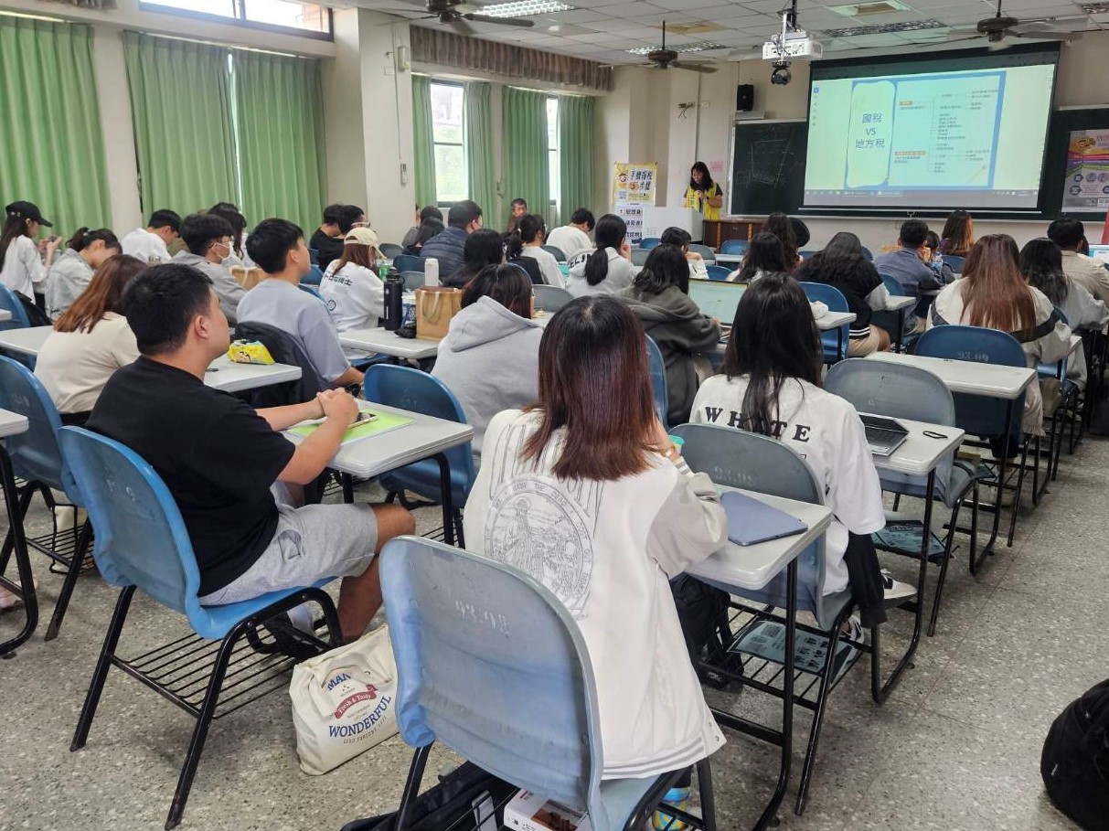 國稅局講師向同學們介紹國稅與地方稅的不同,透過生活化的例子向同學說明各稅的課稅範圍。