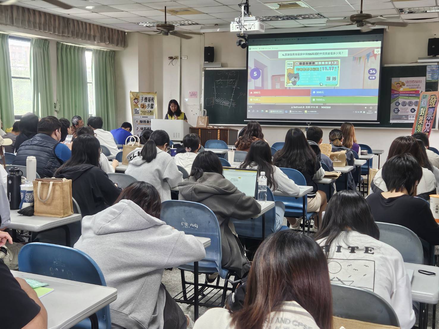 國稅局講師透過KaHoot!互動問答遊戲增加講習趣味性、提高學員專注力,強化同學對稅務知識的認識。