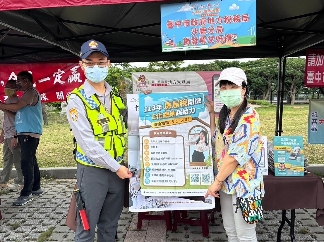 沙鹿分局113年5月25日配合梧棲區公所五七藝文季「愛上鐵馬采風」辦理租稅宣導活動