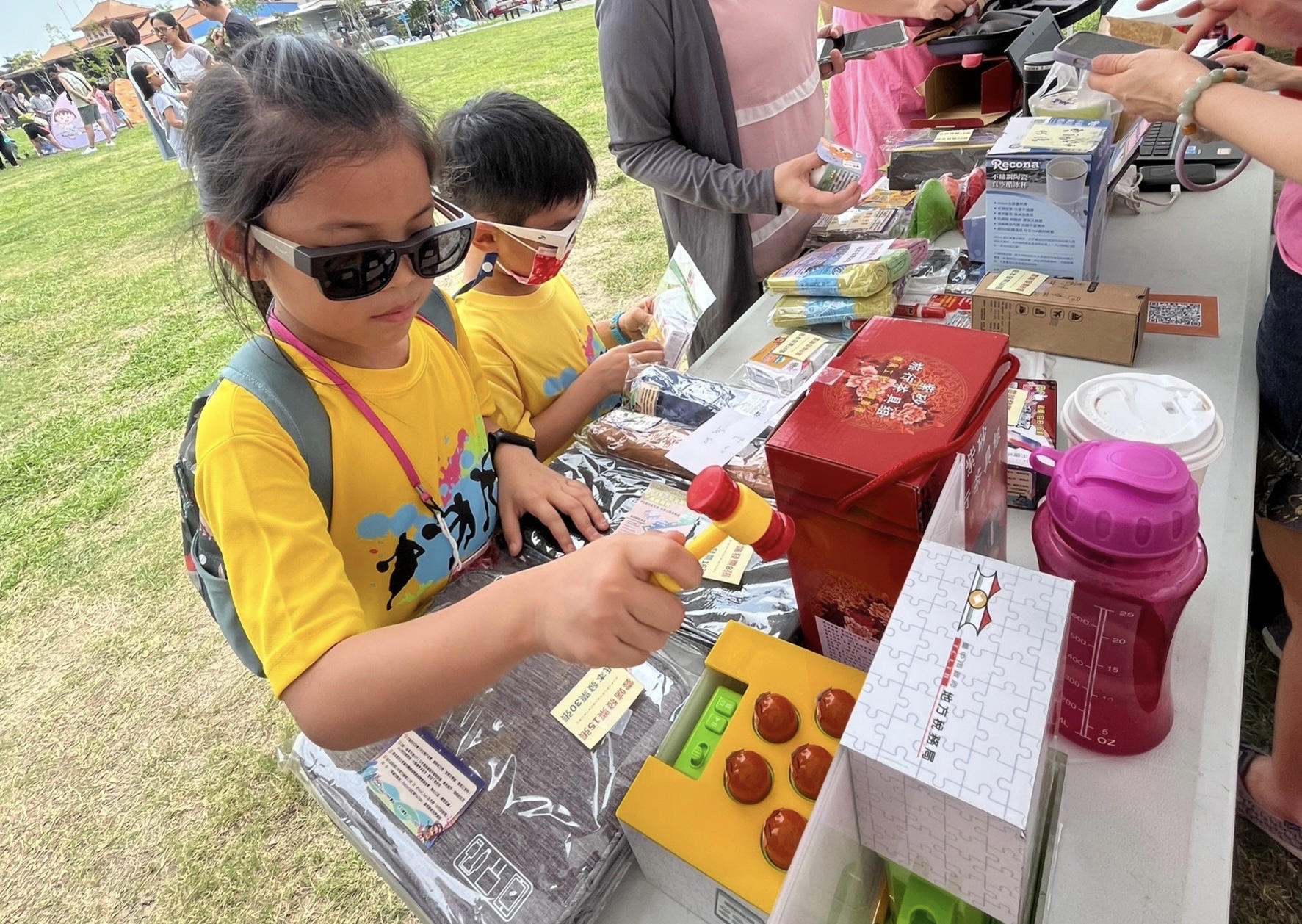 宣導品項豐富,民眾好奇駐足,工作人員趁機推廣「統一發票兌獎APP」,宣傳雲端發票專屬獎並完成領獎帳戶及載具歸戶設定。