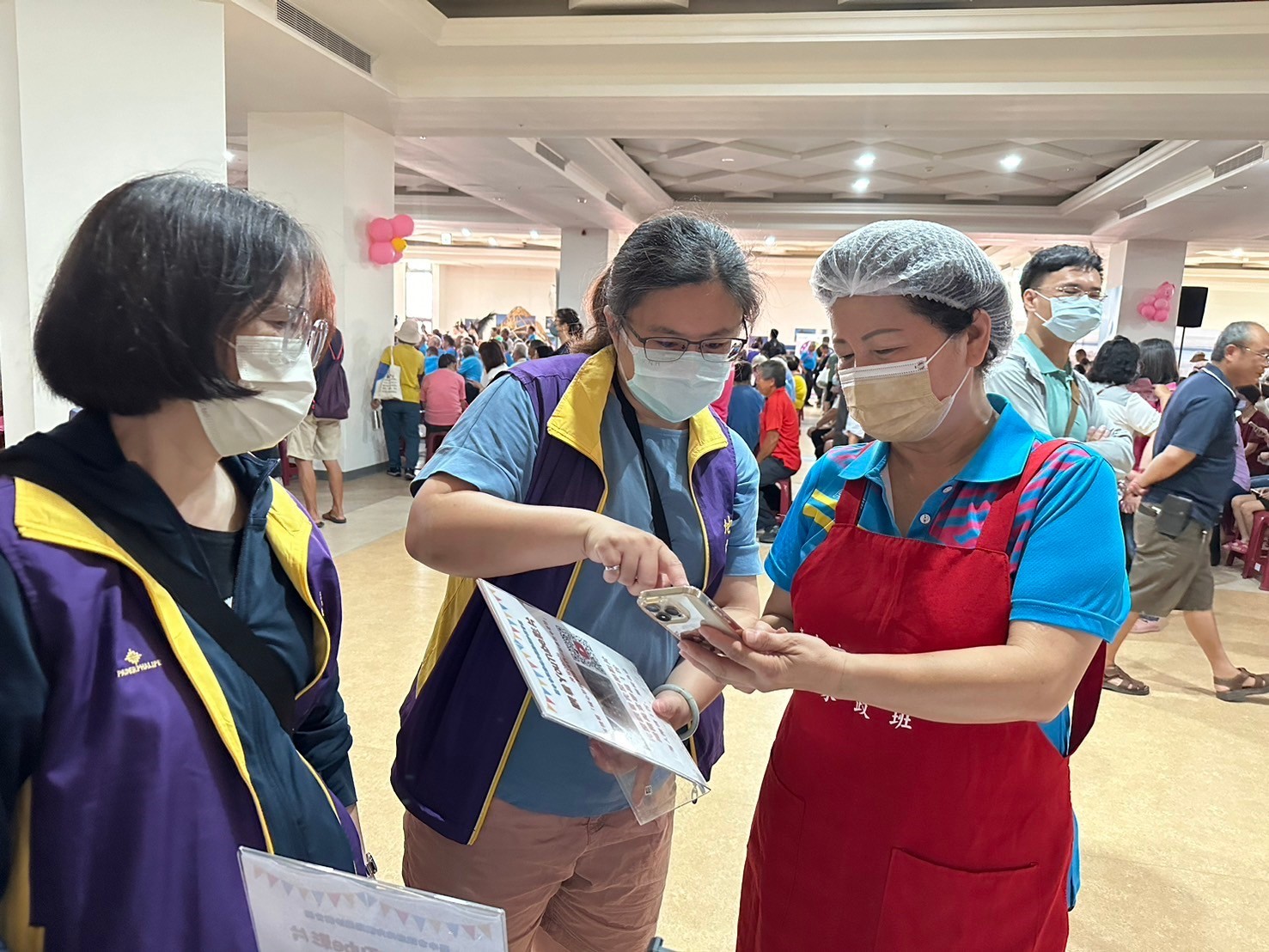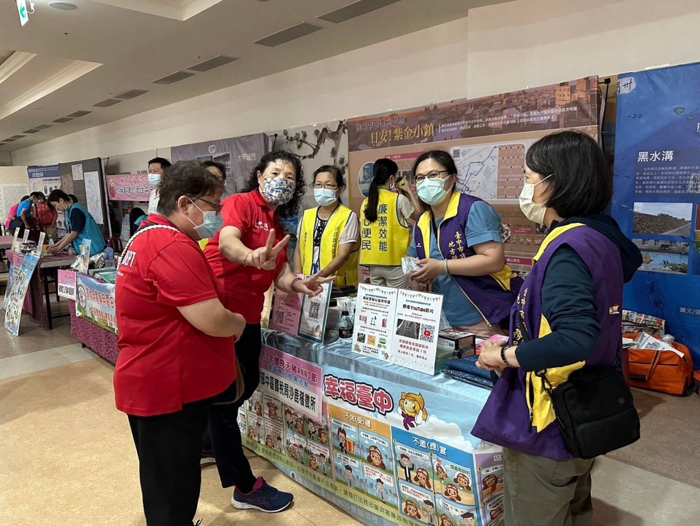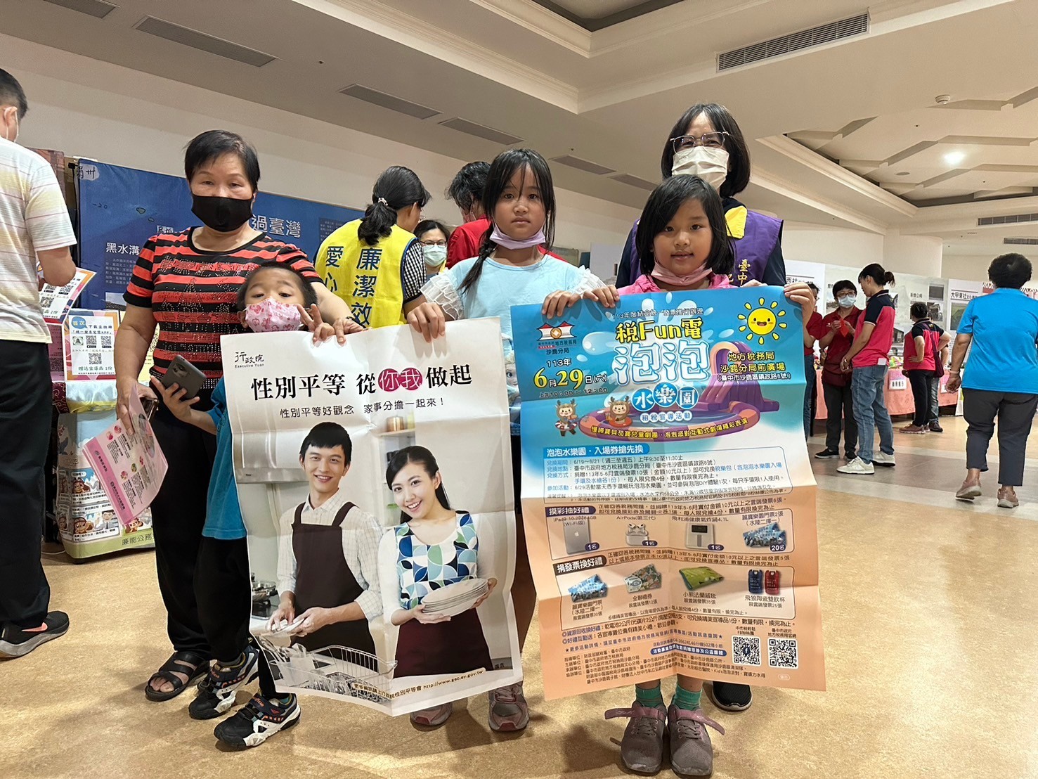 同仁搭配海報文宣,向現場民眾推廣性別平等、「稅Fun電.泡泡水樂園」租稅宣導活動等訊息,提高宣導效益。