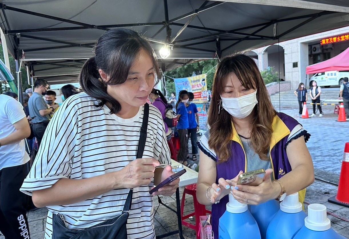 與國稅局沙鹿稽徵所一同設攤宣導,於活動現場教導民眾使用「統一發票兌獎」APP儲存發票以及設定載具歸戶。
