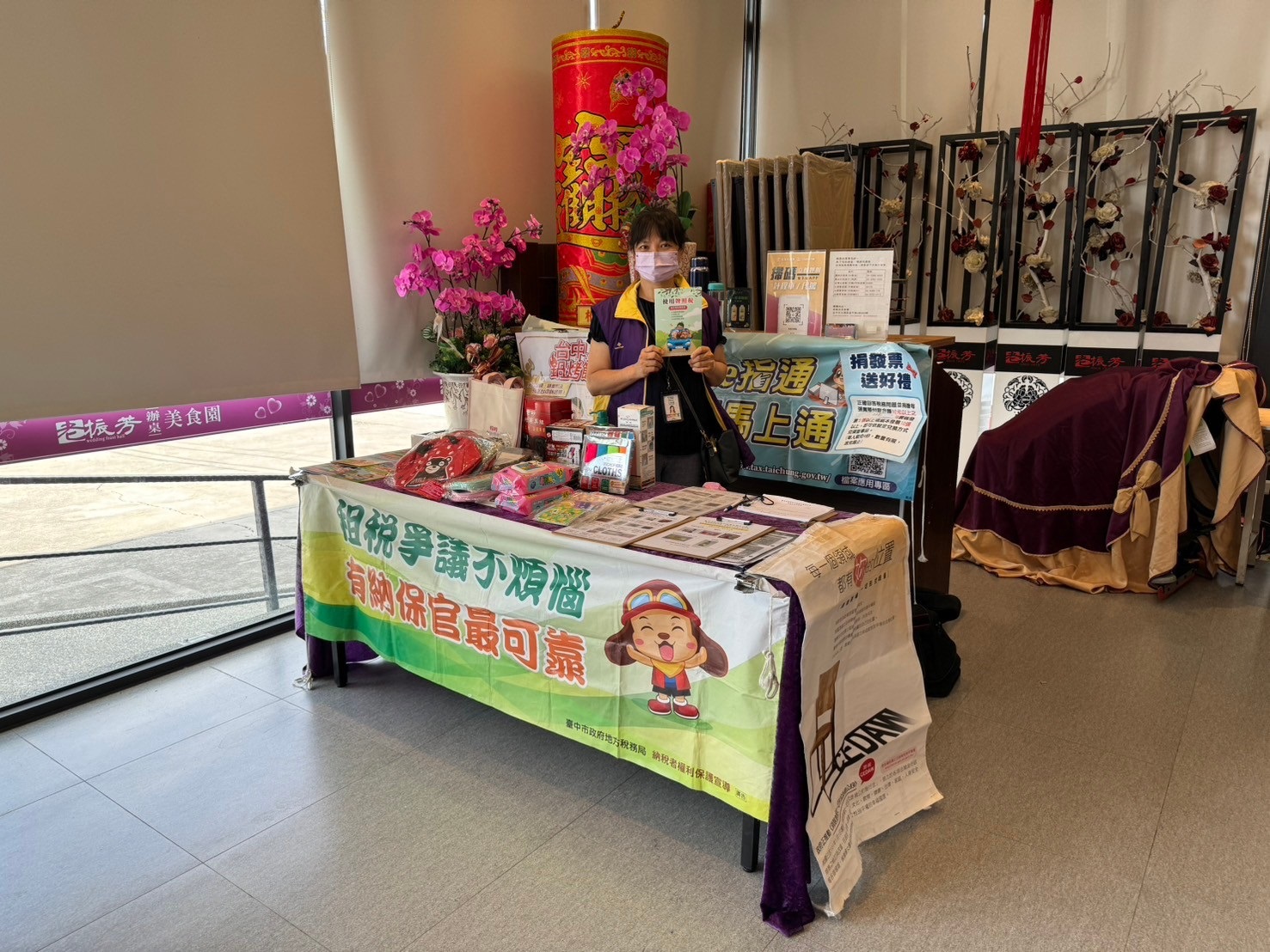 設置宣導服務台,提供地方稅各稅宣導手冊供民眾索取,懸掛布條宣導納稅者權利保護法、檔案管理,及張貼海報協助宣傳性別平等及「2024台中鍋烤節」等訊息。