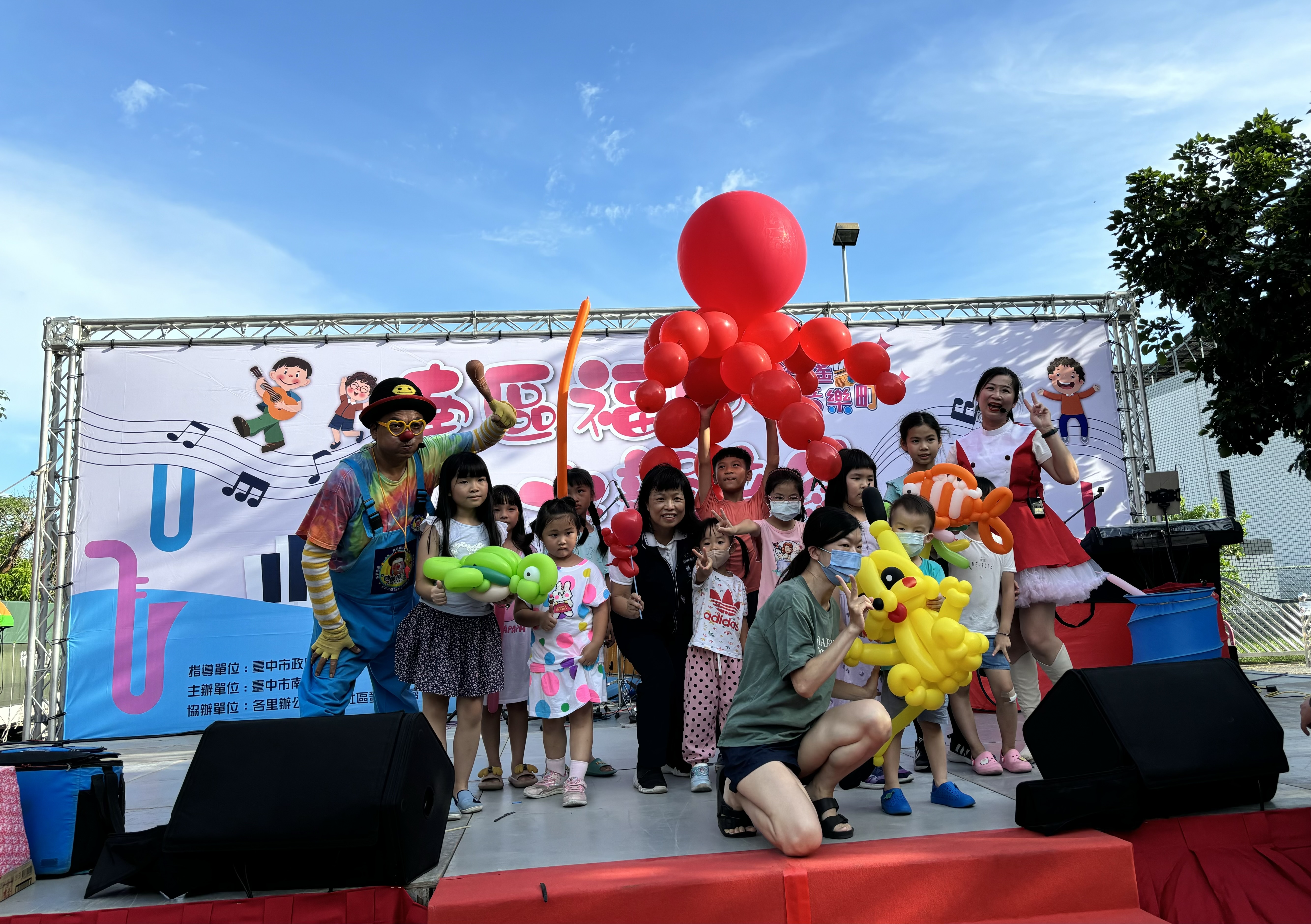 南區區長和現場拿到造型氣球的小朋友開心的合影。