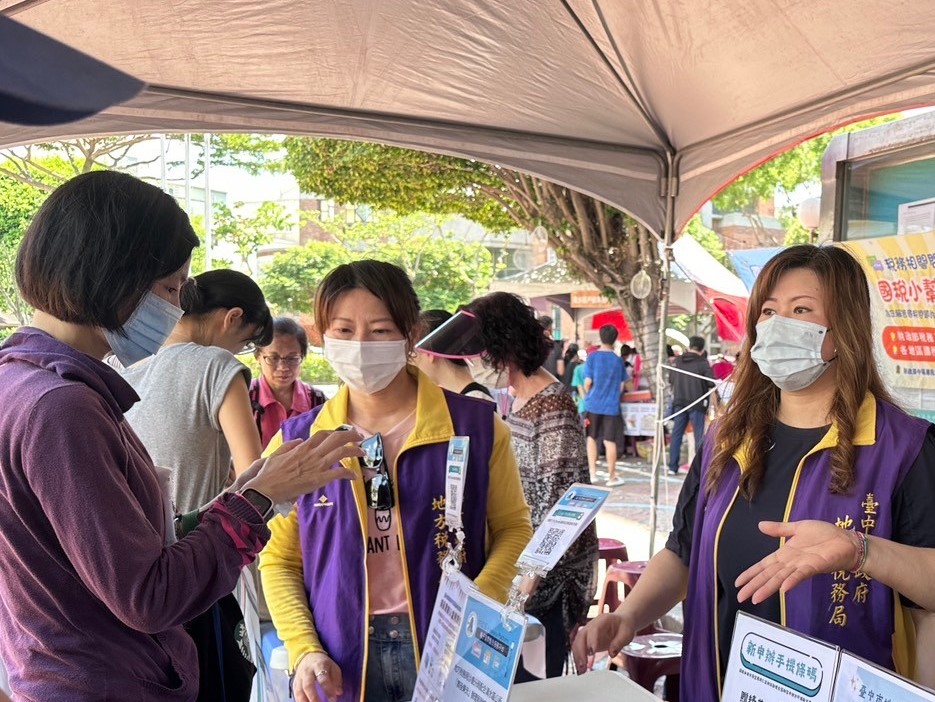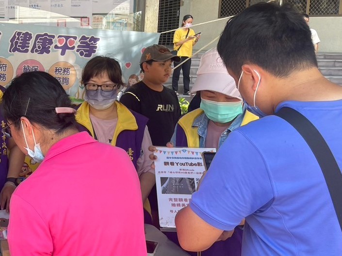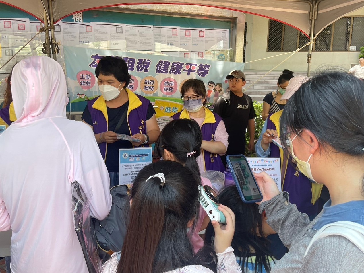 設置宣導服務櫃檯,同仁向現場民眾推廣使用統一發票兌獎APP、宣導最新租稅法令訊息及提供稅務諮詢服務。