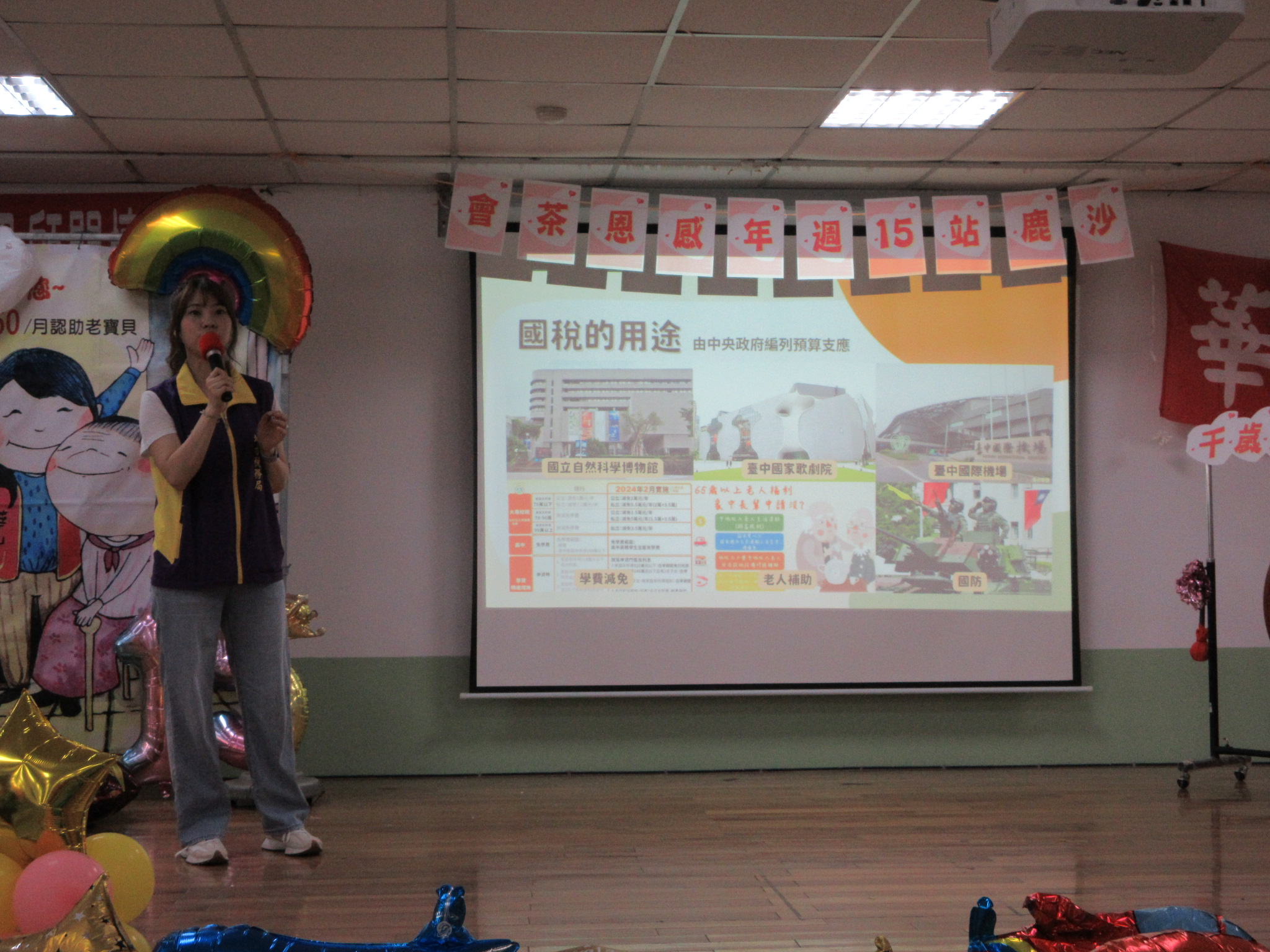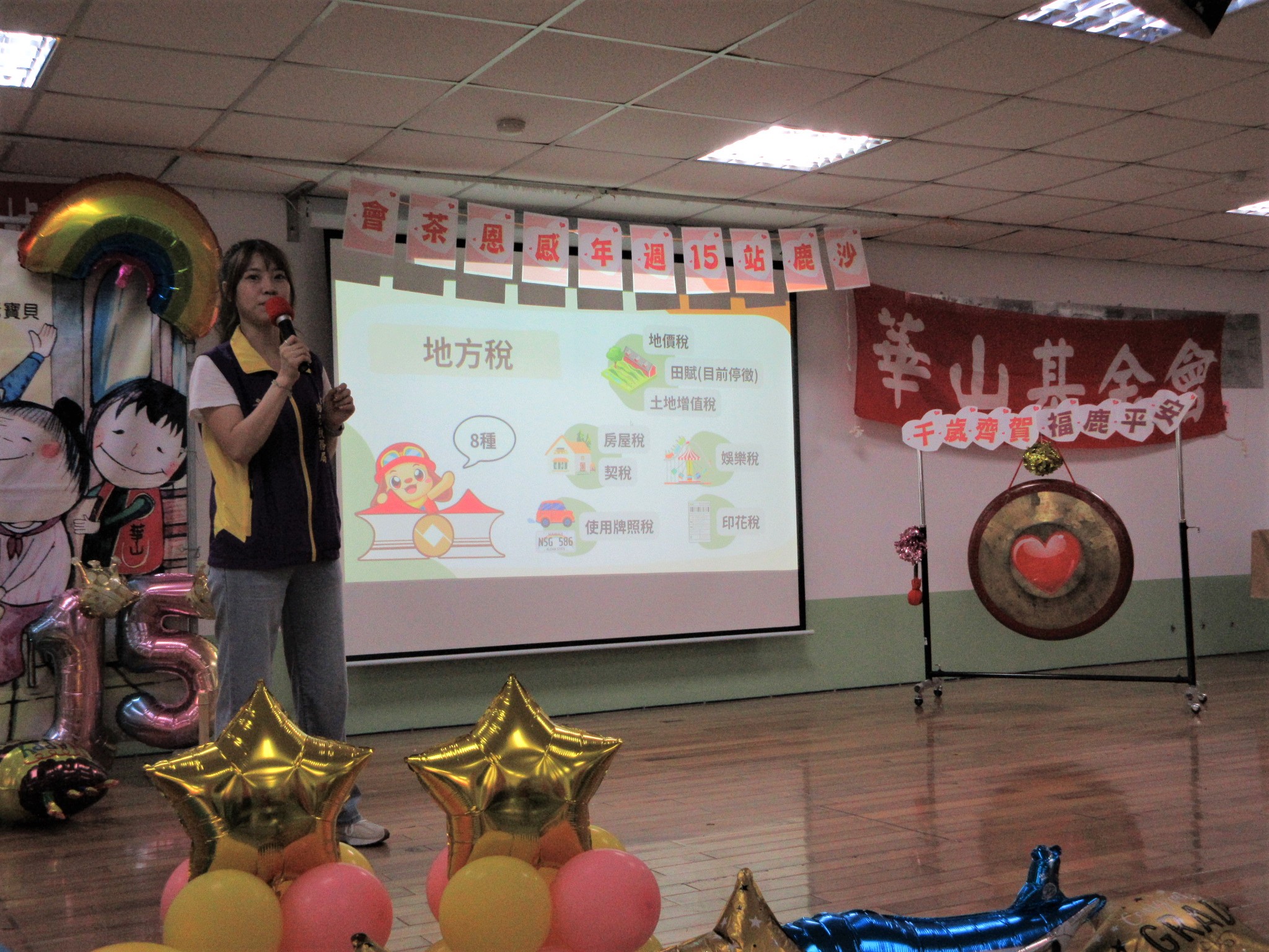 講師透過簡報向學員講解稅收的目的,宣導正確的稅務知識。