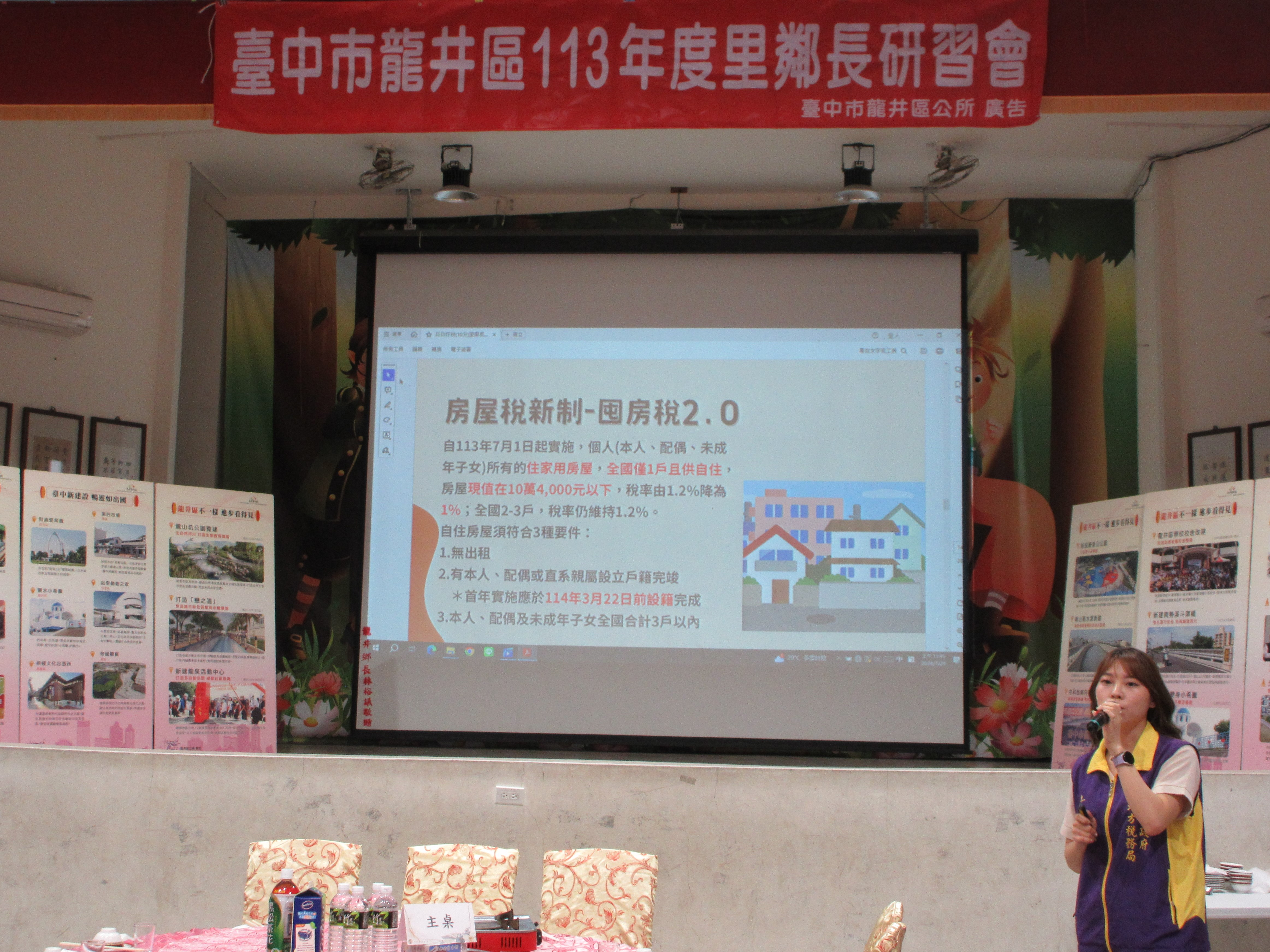 配合龍井區公所113年度里鄰長研習會辦理租稅講習會,講師向里鄰長介紹國稅與地方稅所屬稽徵機關及聯絡方式。