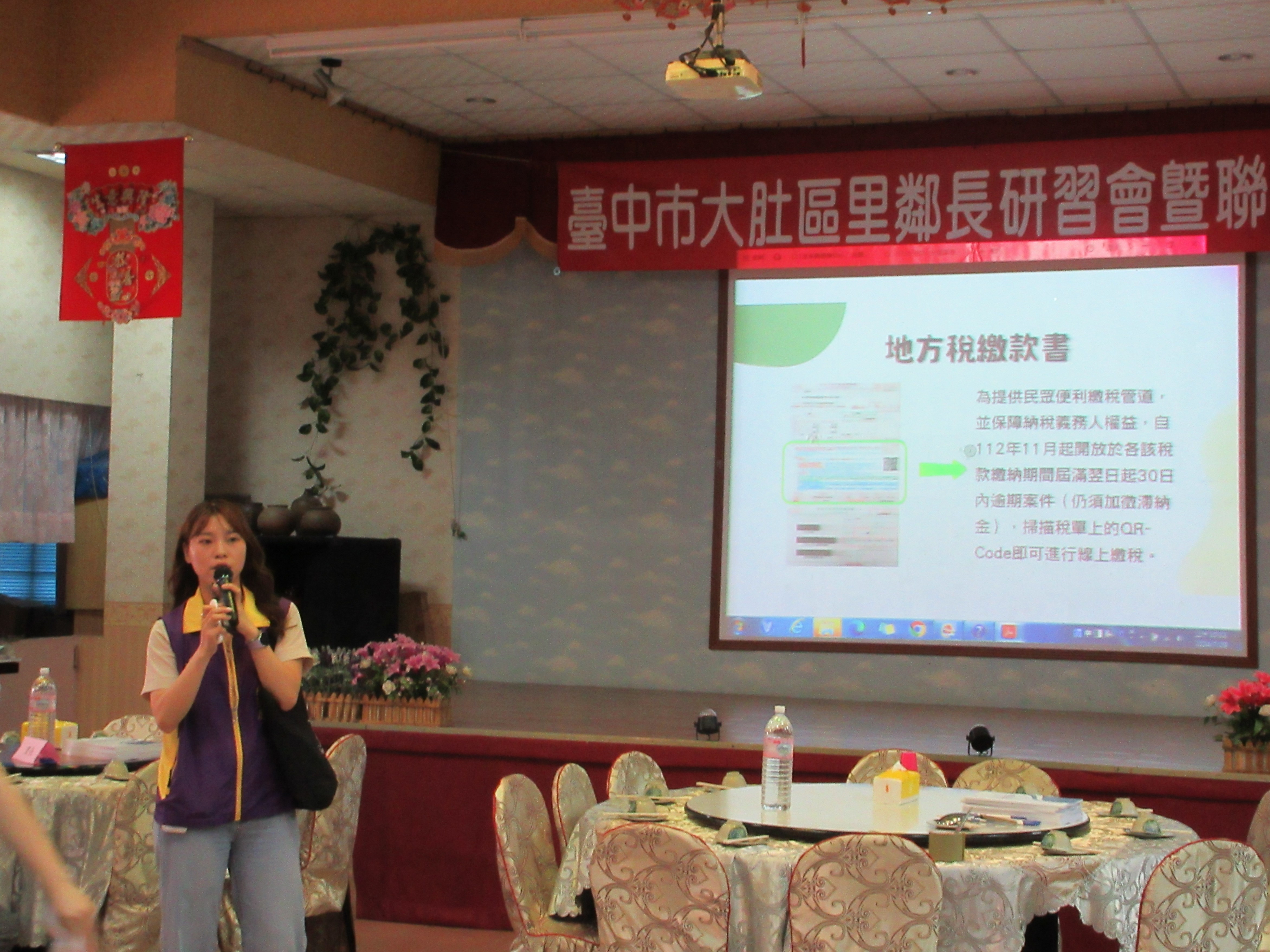 配合大肚區公所113年度里鄰長研習會辦理租稅講習會,向與會的里鄰長們宣導正確的稅務知識。