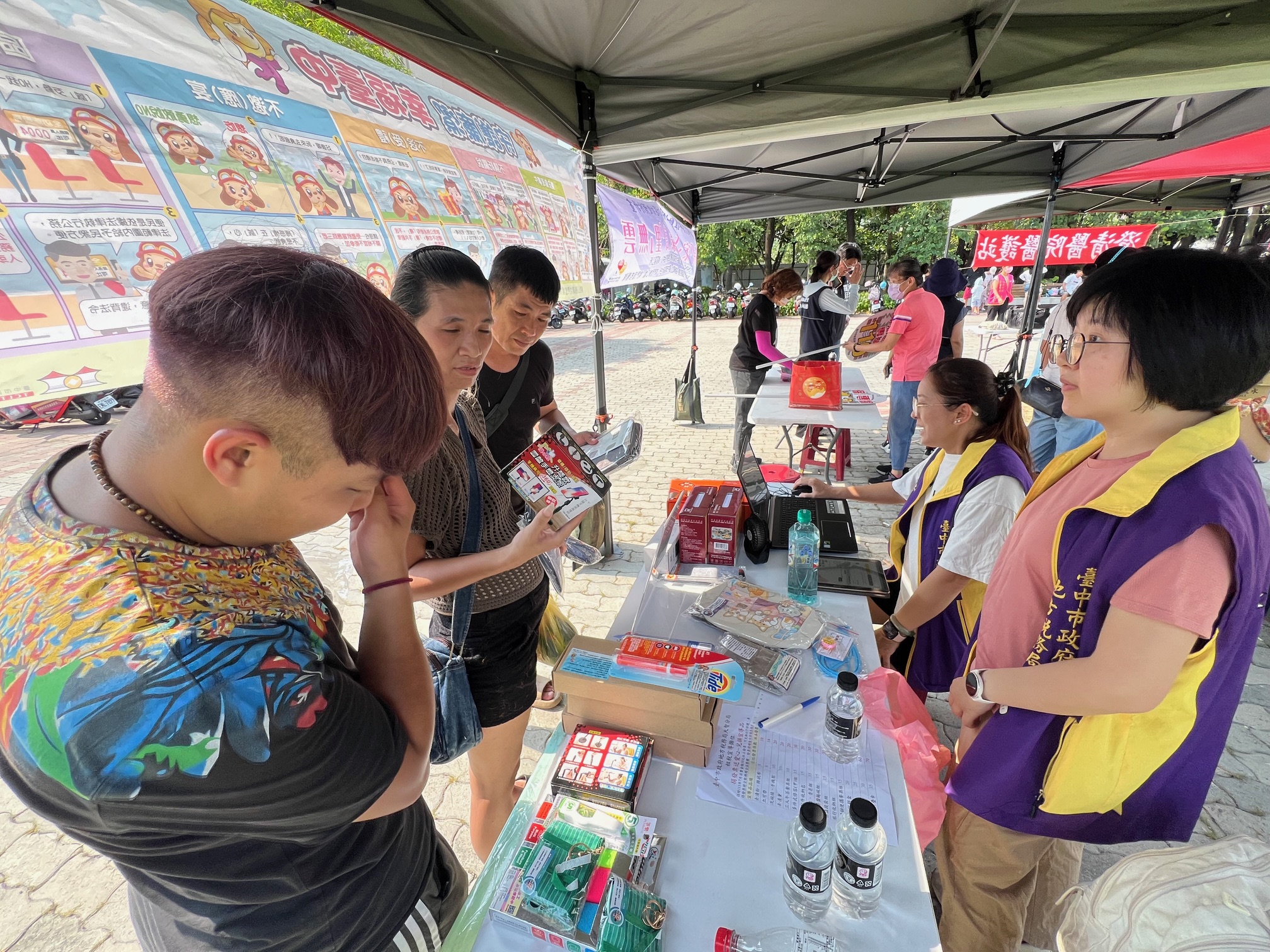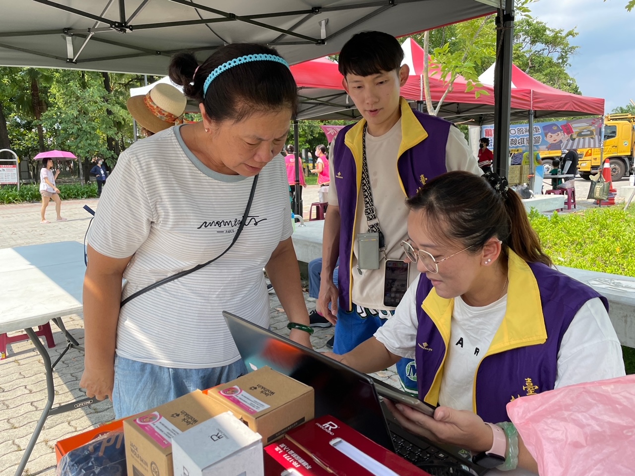 協助現場民眾捐雲端發票兌換宣導品,募集發票將捐贈社會福利團體。