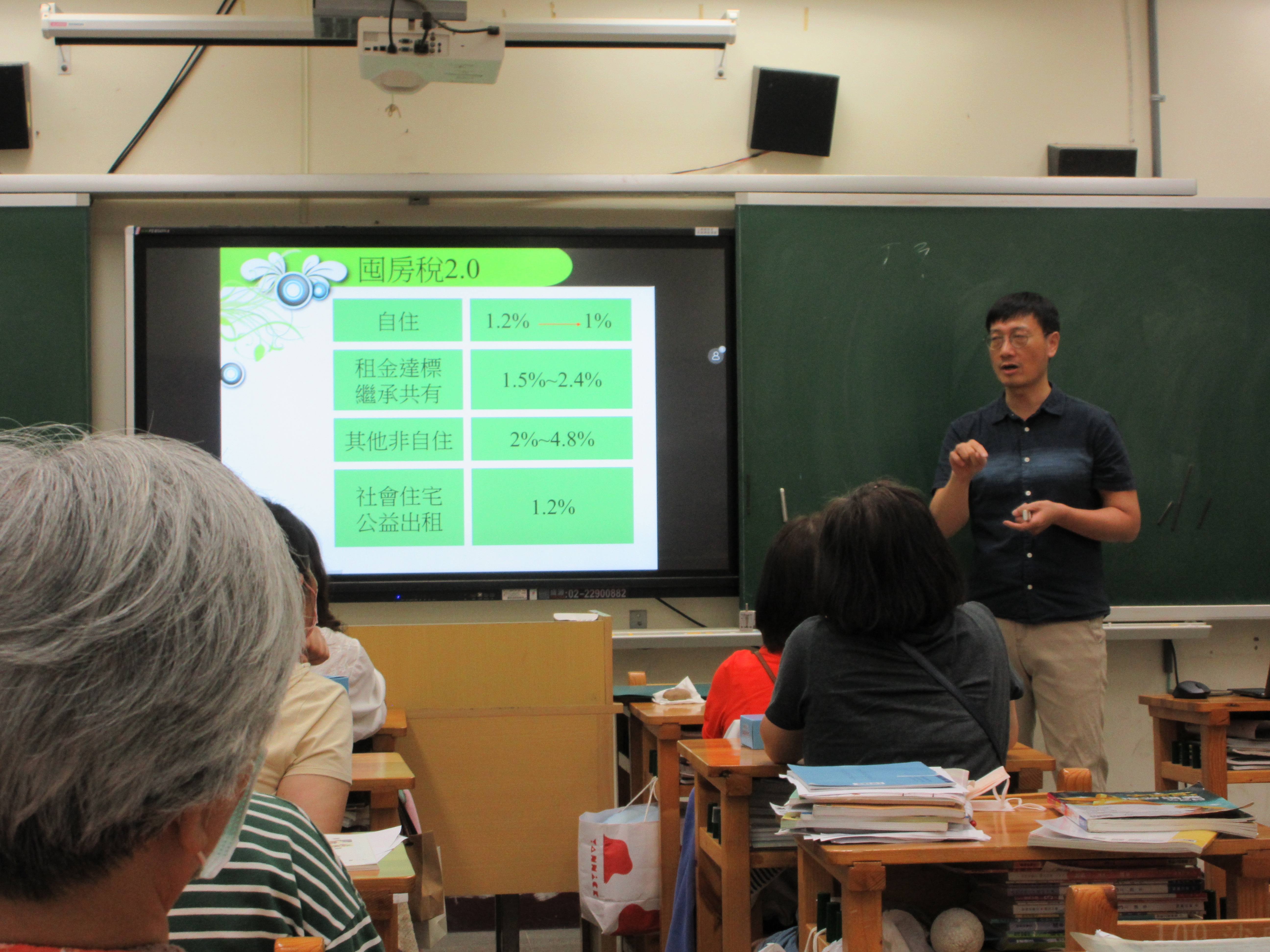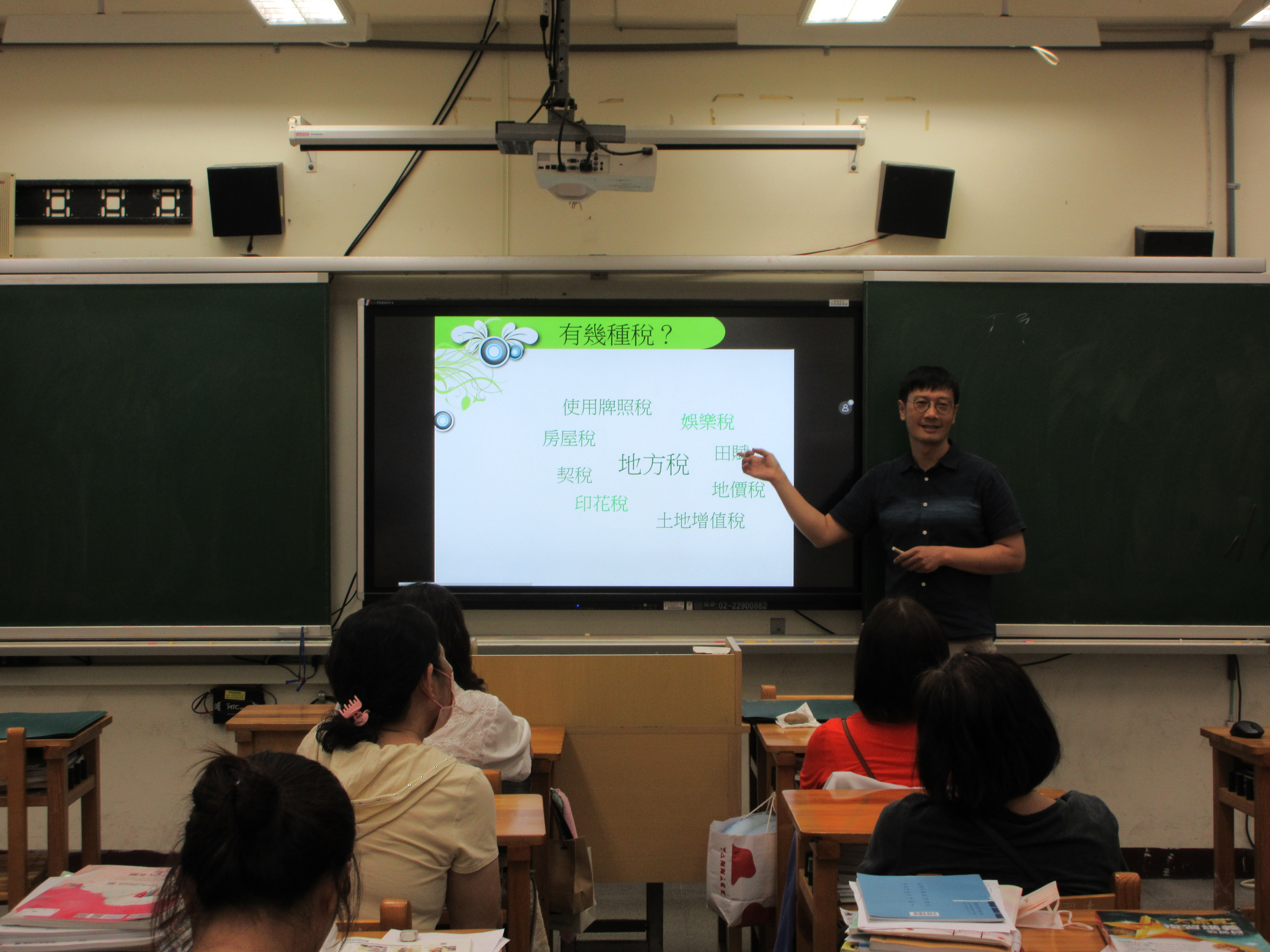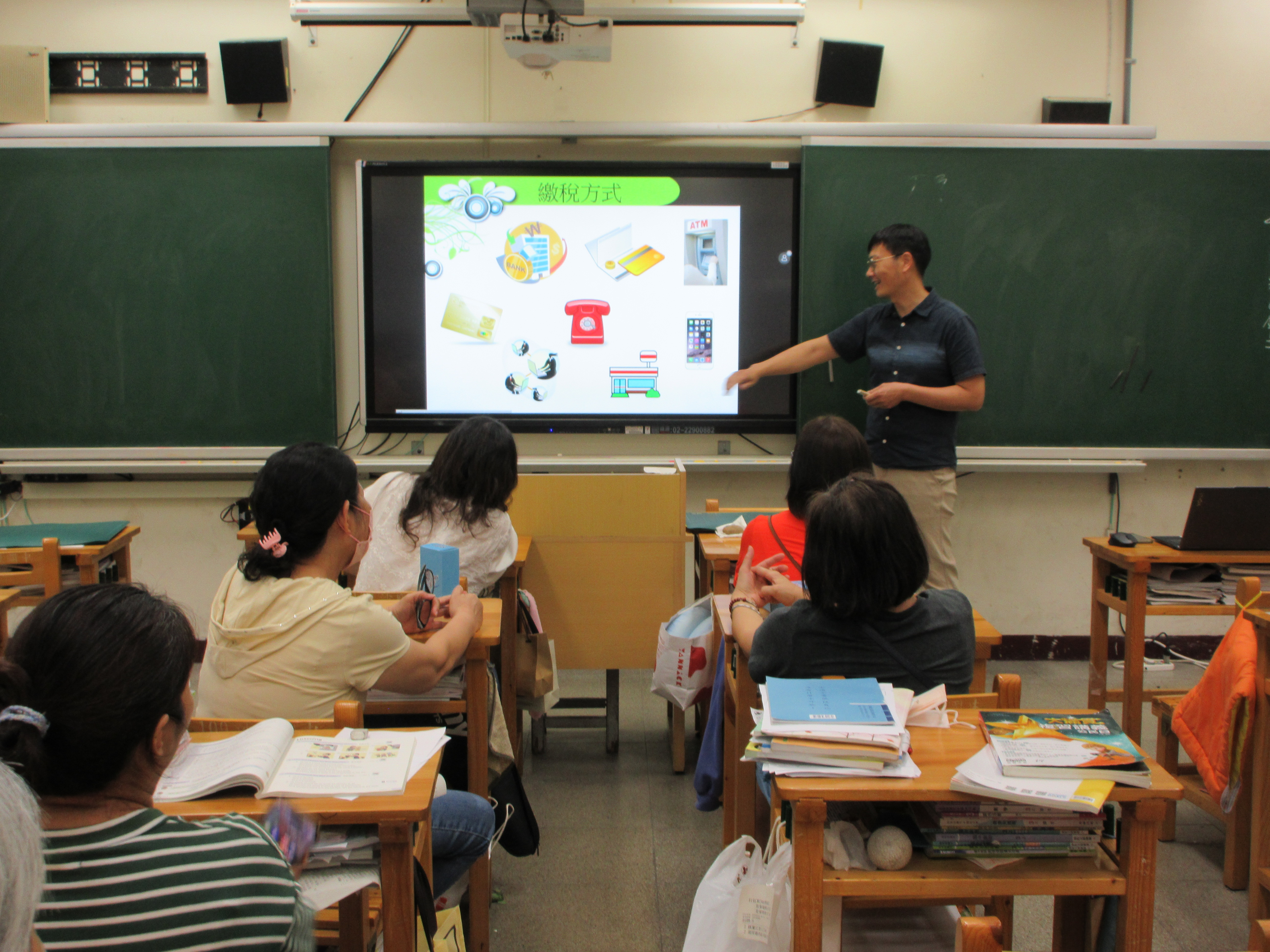 沙鹿分局結合沙鹿國中附設補校辦理租稅講習會,講師細心向同學介紹稅收與國家建設、社會福利的關係。