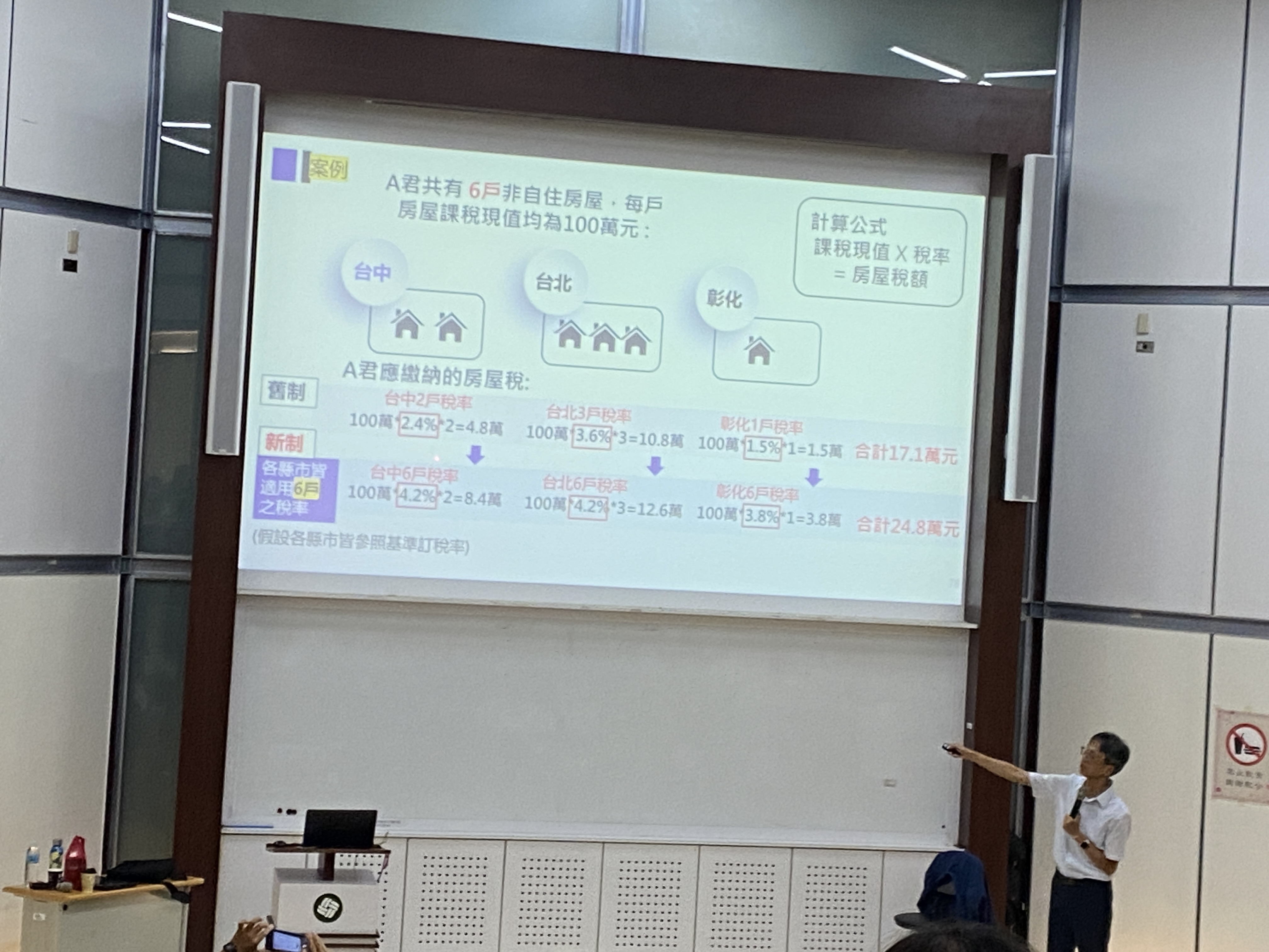 學員聚精會神聆聽講師解說房屋稅修正前、後法定稅率之差異。