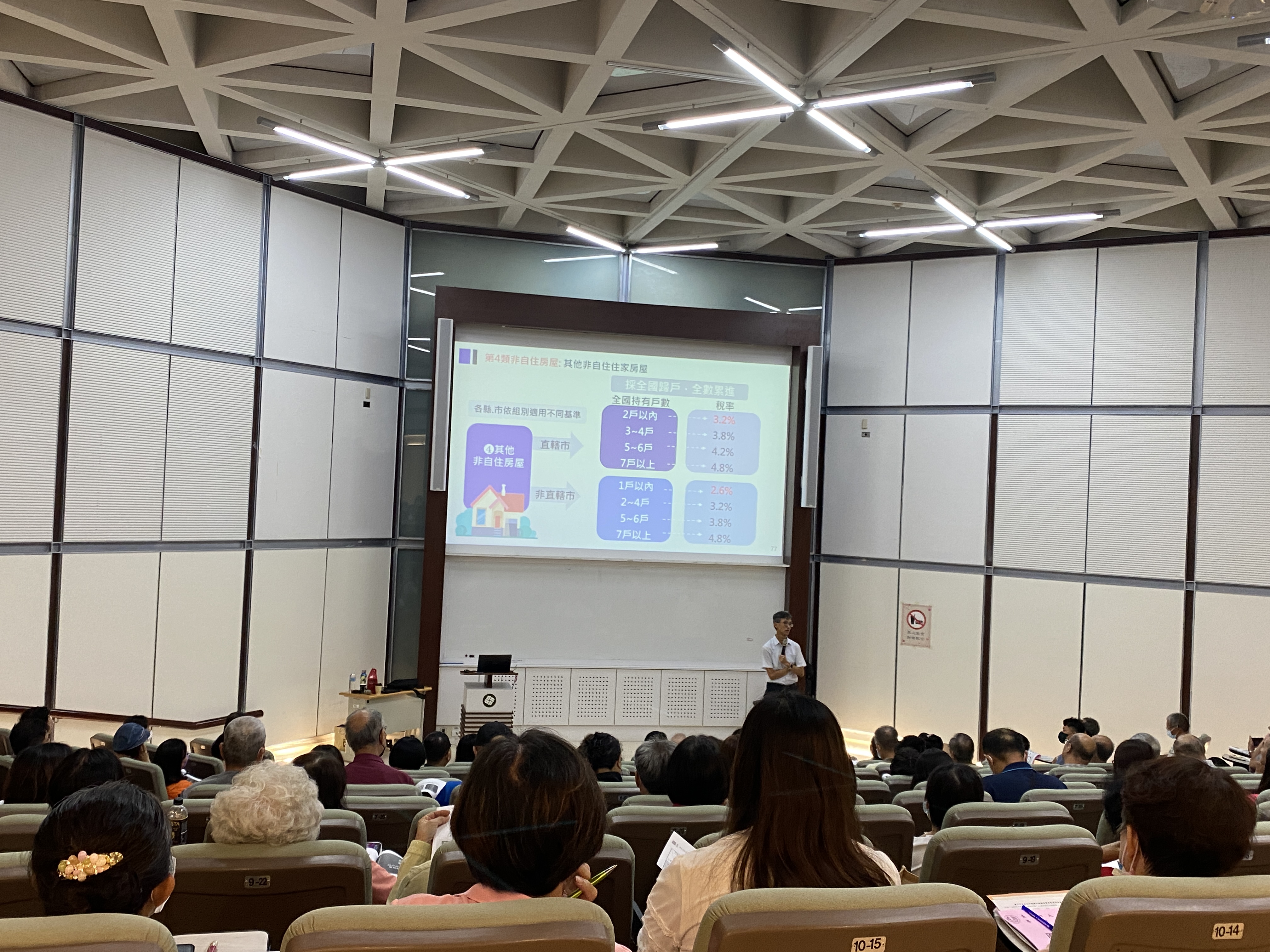 因應「囤房稅2.0」結合臺中市大臺中地政士公會辦理「囤房稅2.0版解析課程」 ,為專業人士講授房屋稅條例新制相關規定及重點。