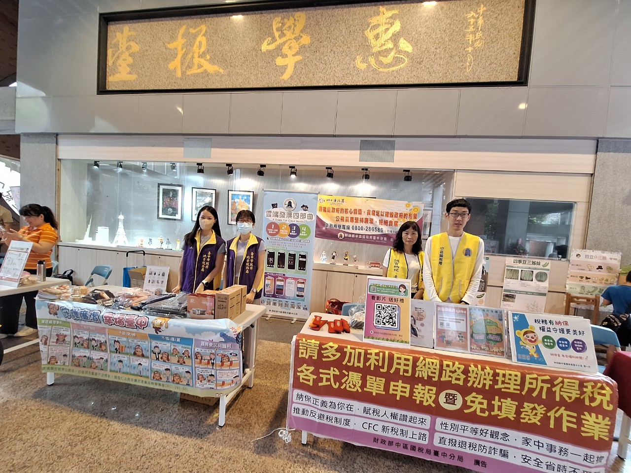 國稅局也一起參與本次校慶活動,攜手合作並肩宣導,民眾不僅有精美贈品可兌換,國稅、地方稅的問題也都能一次滿足。