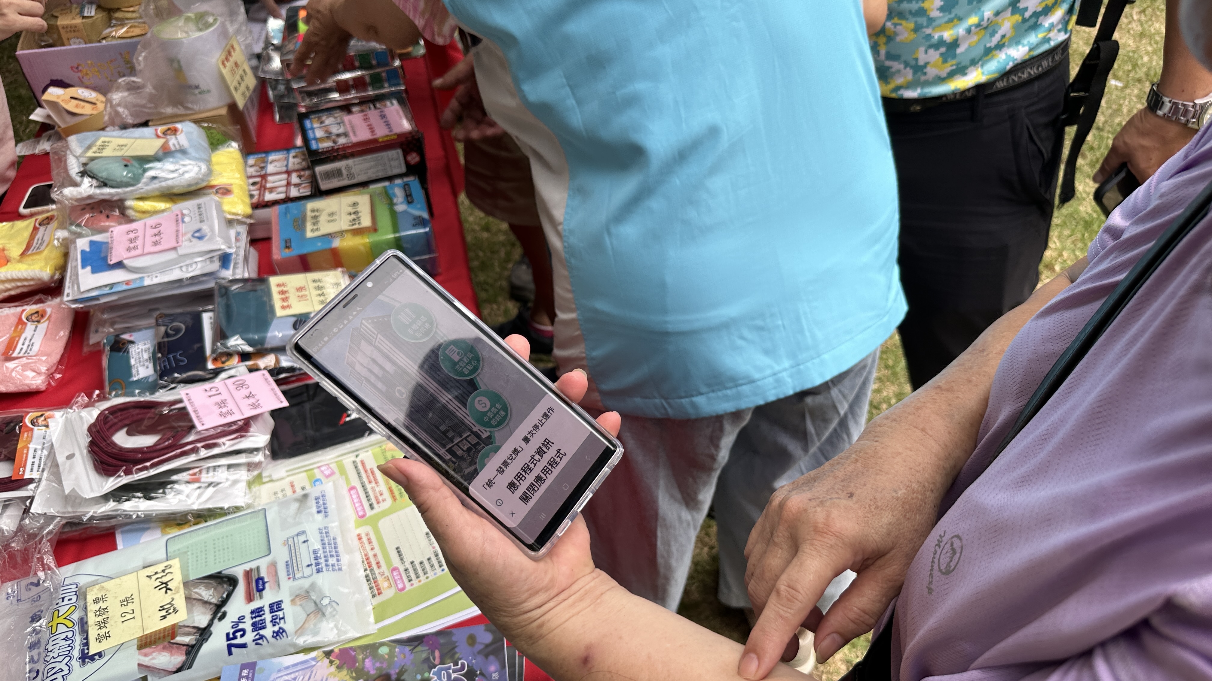 宣導人員利用手機小工具,將條碼置頂於桌面上,使用上更加便利。