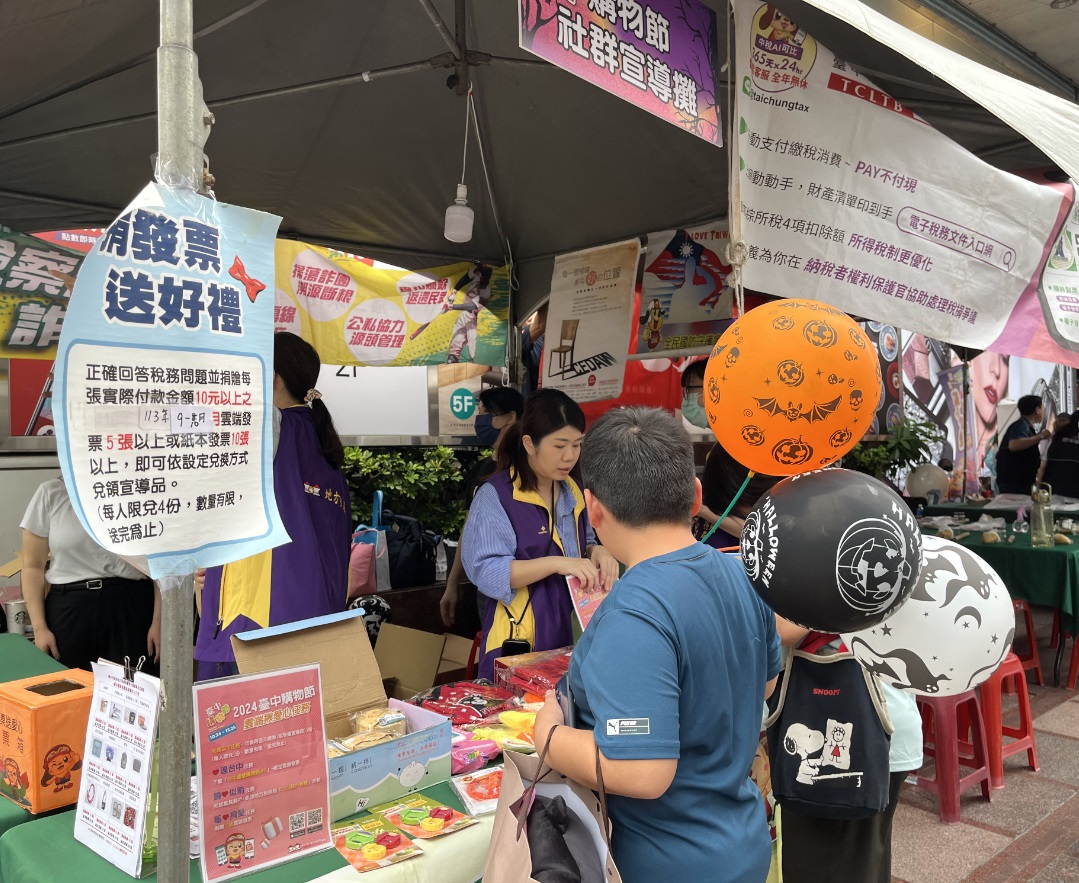 2024臺中購物節-萬聖嘉年華主題活動,民眾踴躍參與「雲端揪愛心任務」雲端發票推廣活動。