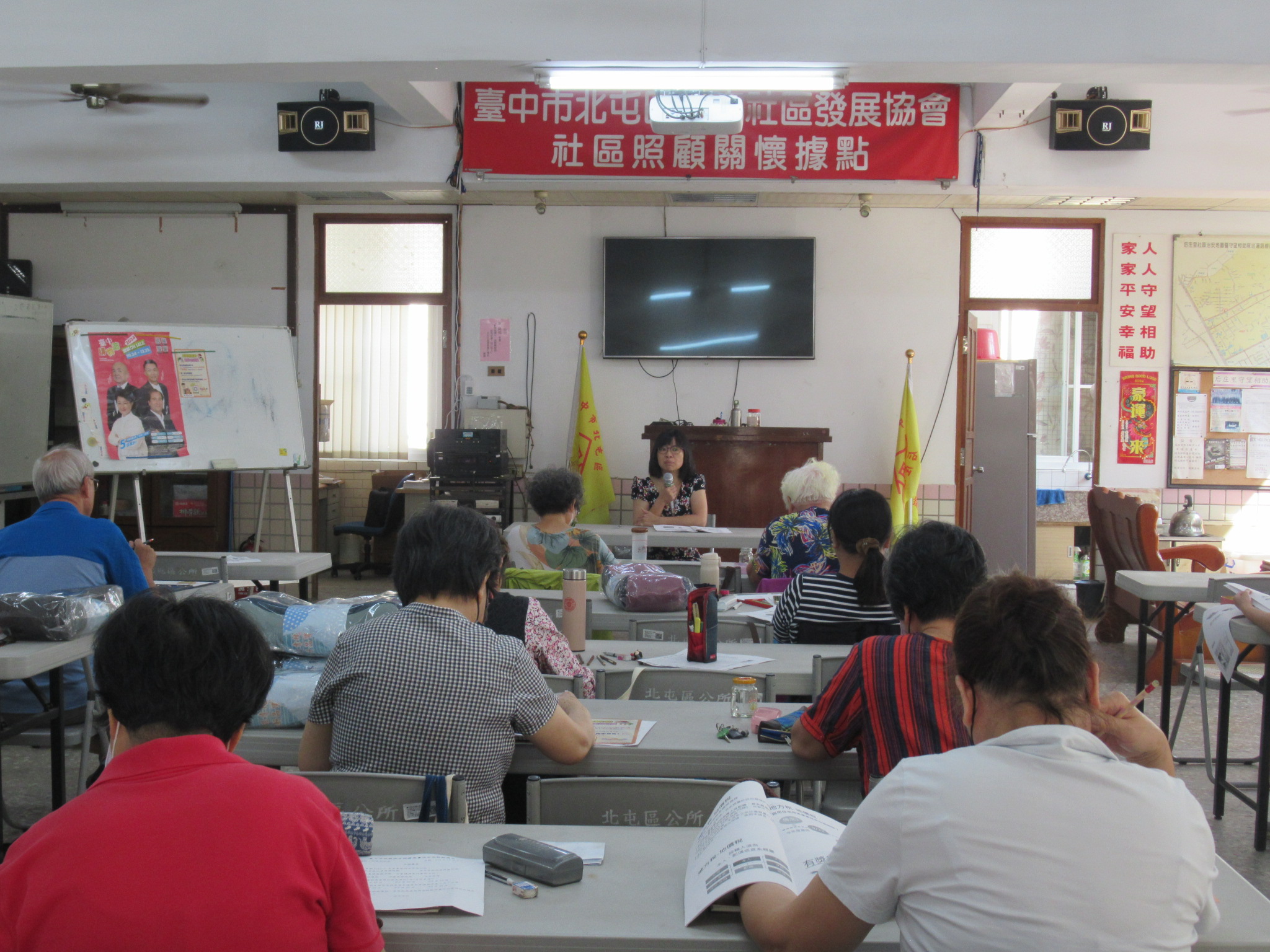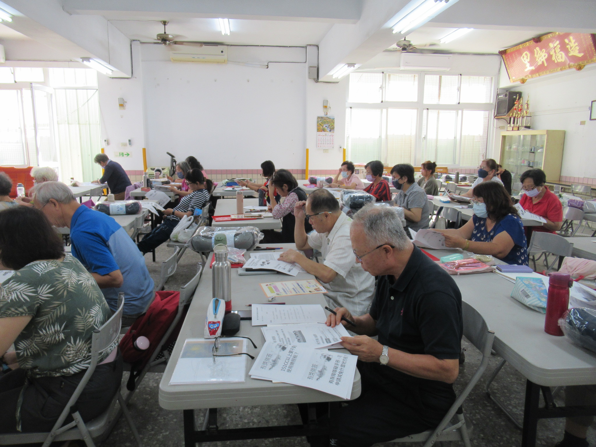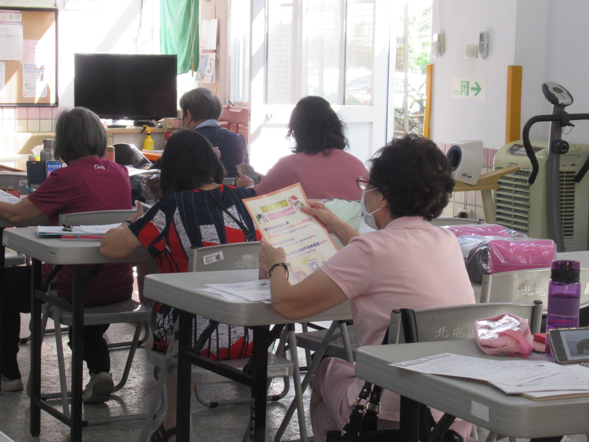 張貼房屋稅條例修正政策及臺中購物節文宣,並向學員推廣,擴大宣導效益。