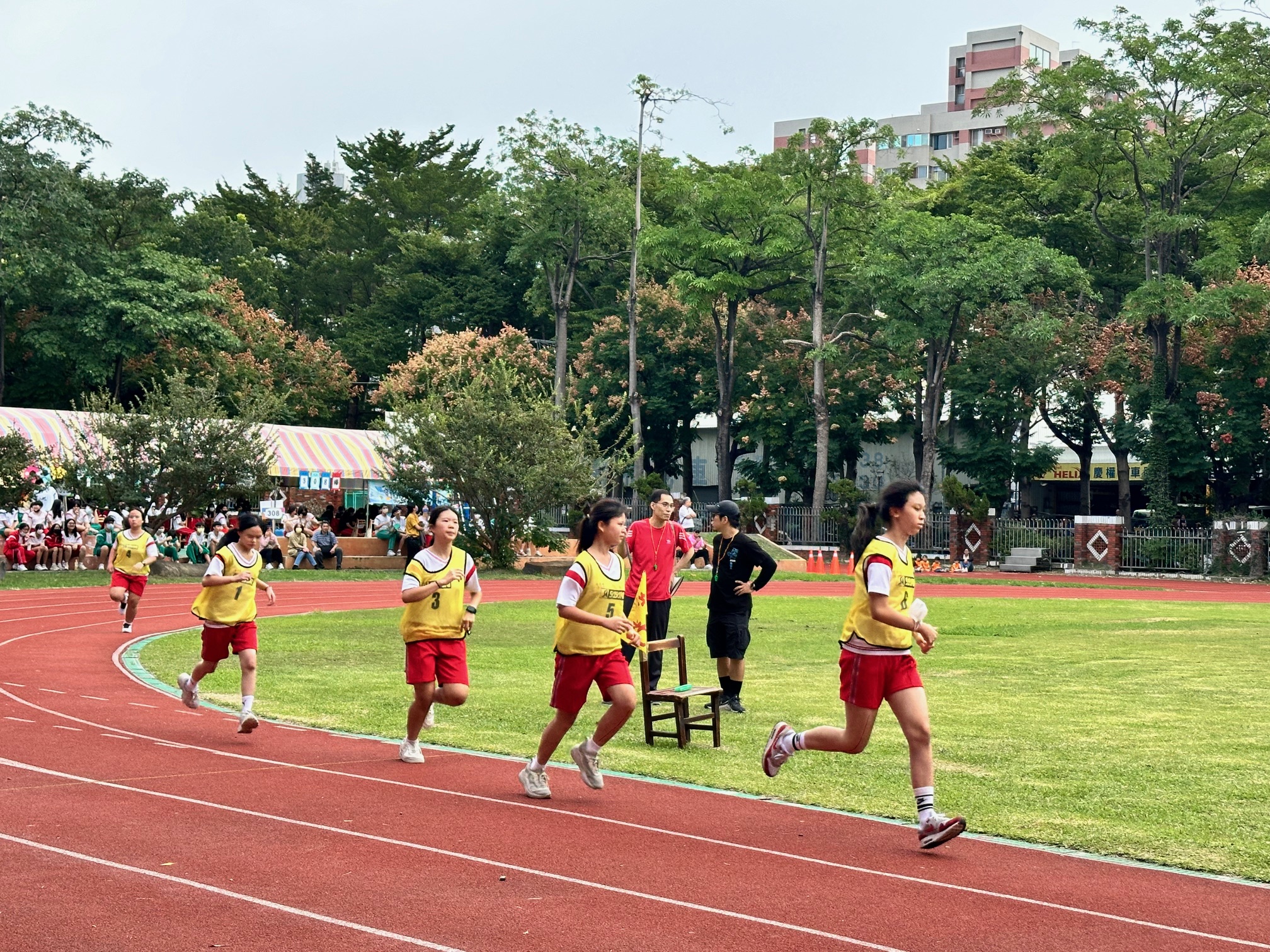 400公尺決賽登場,各班的好手同場一決高下,同學們都奮力為班級爭光。