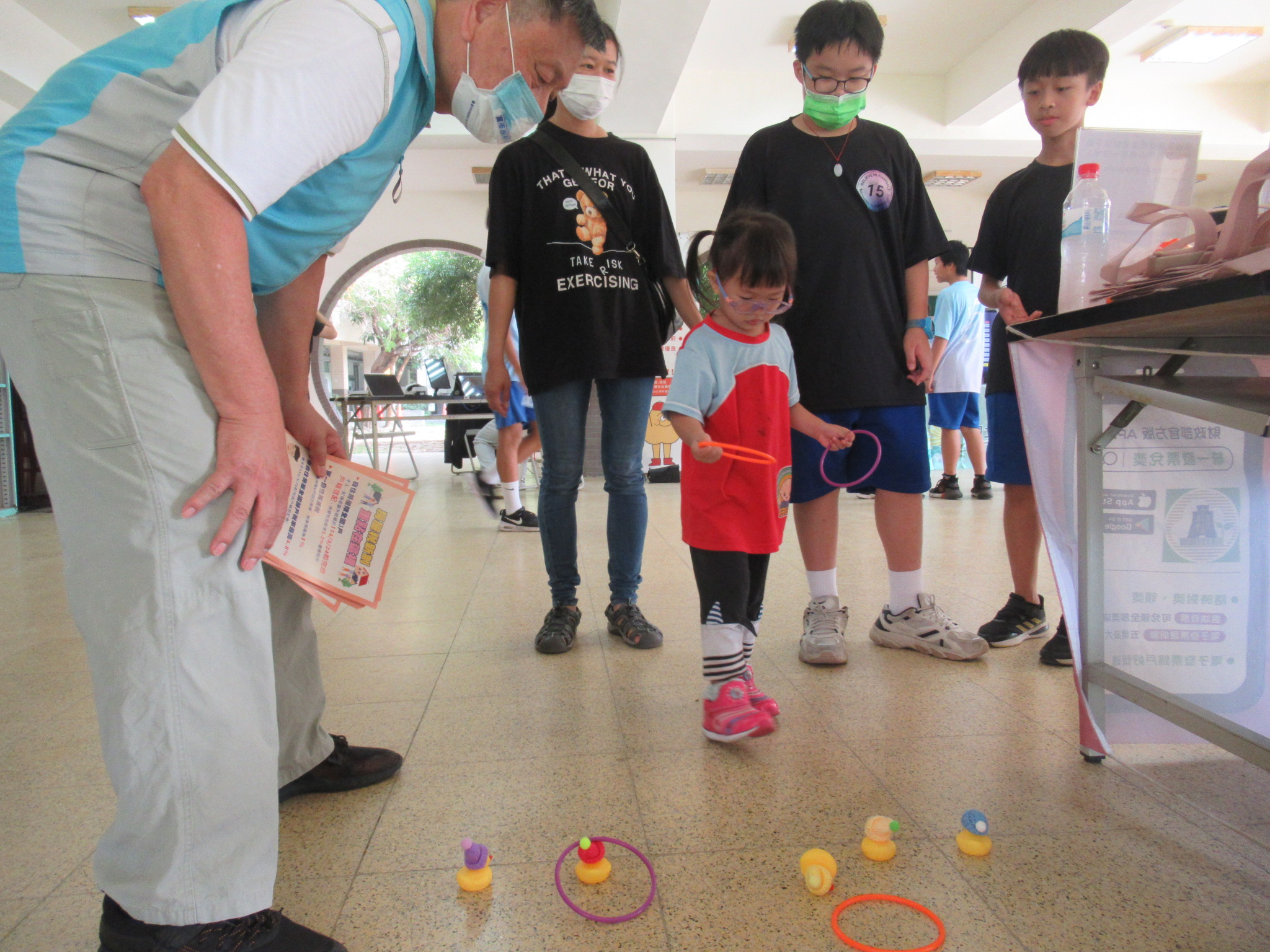 運用遊戲輔具-鴨子套圈圈並結合稅務有獎徵答,吸引學生及小孩參與。