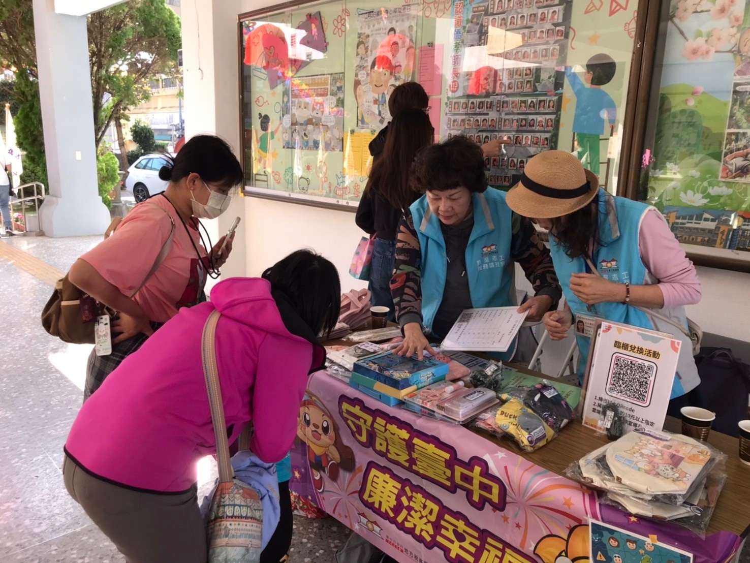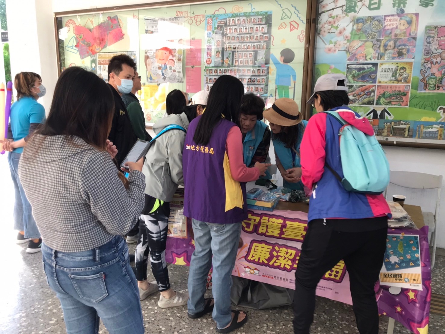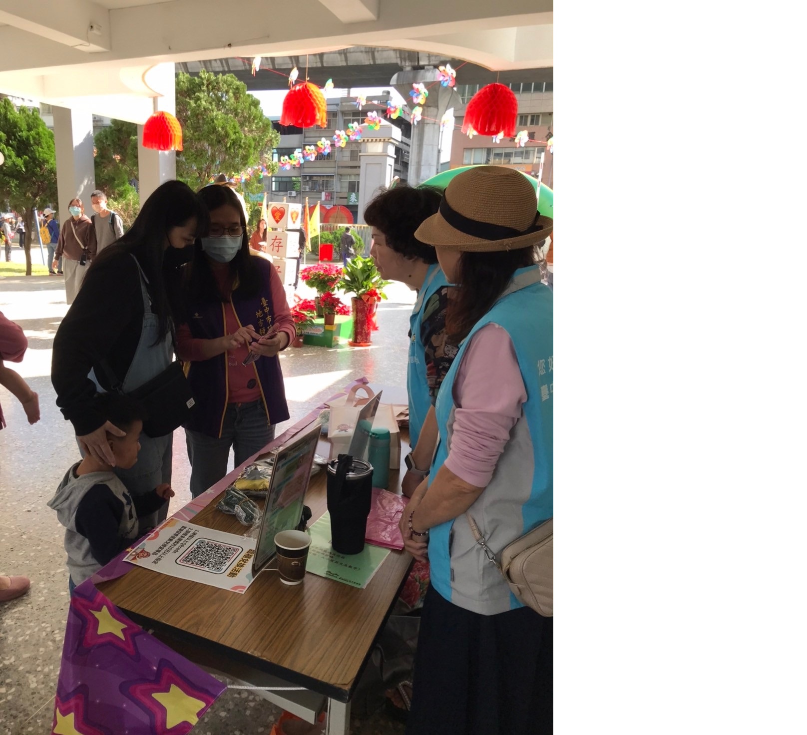 志工向民眾介紹宣導品種類有哪些,及推廣使用載具儲存雲端發票。
