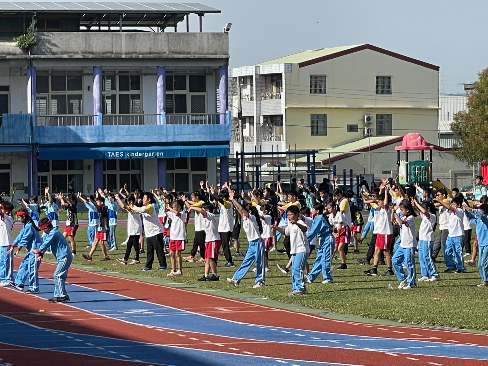 泰安國小校慶暨社區運動大會活動熱鬧展開,小朋友快樂地跳著團隊體操,一起祝福學校生日快樂!