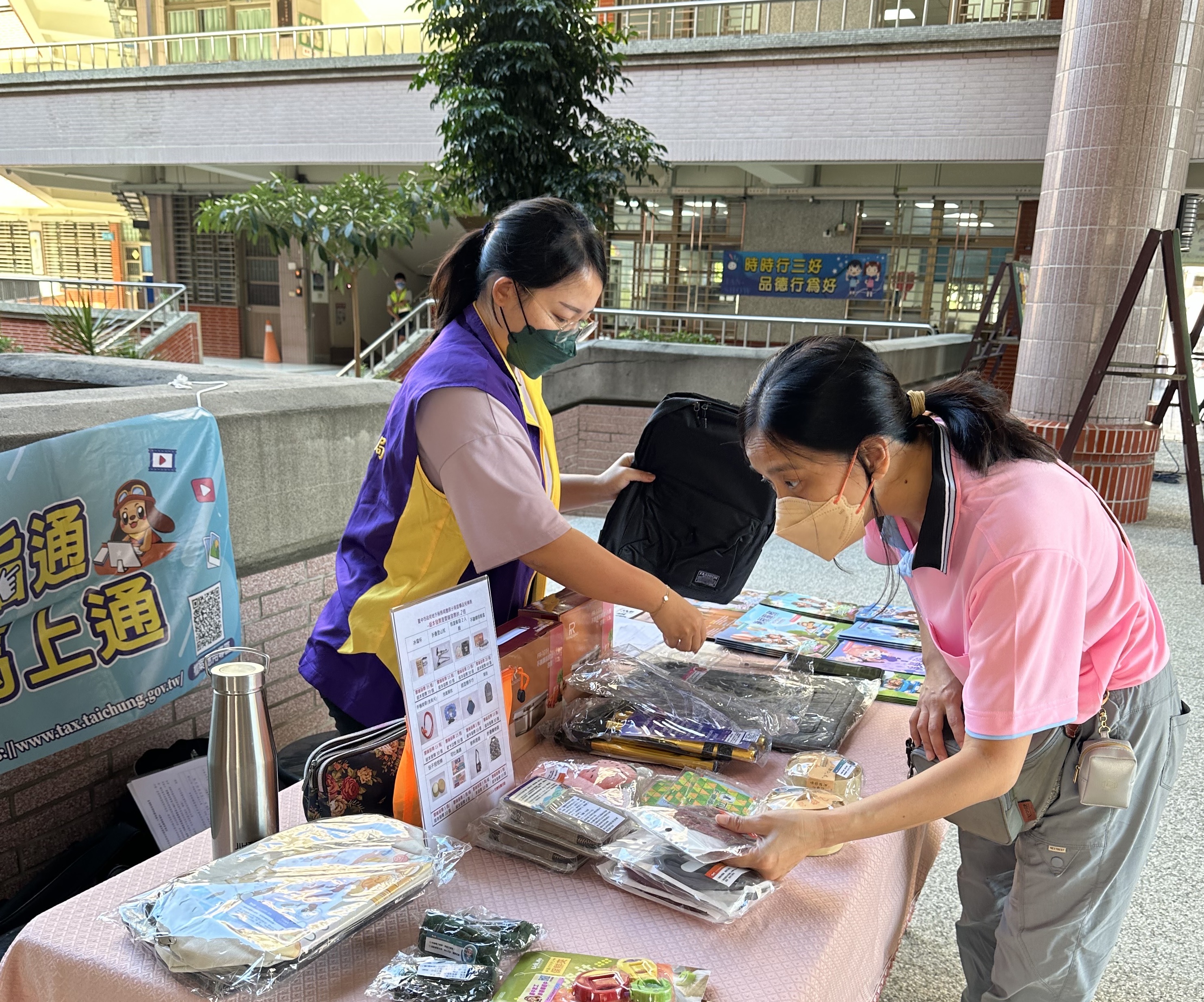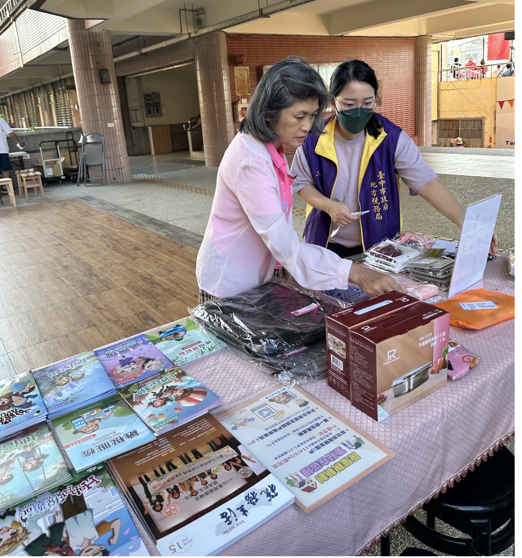 透過活動設置宣導服務台宣傳稅務資訊,還有舉辦捐發票送愛心活動呢。