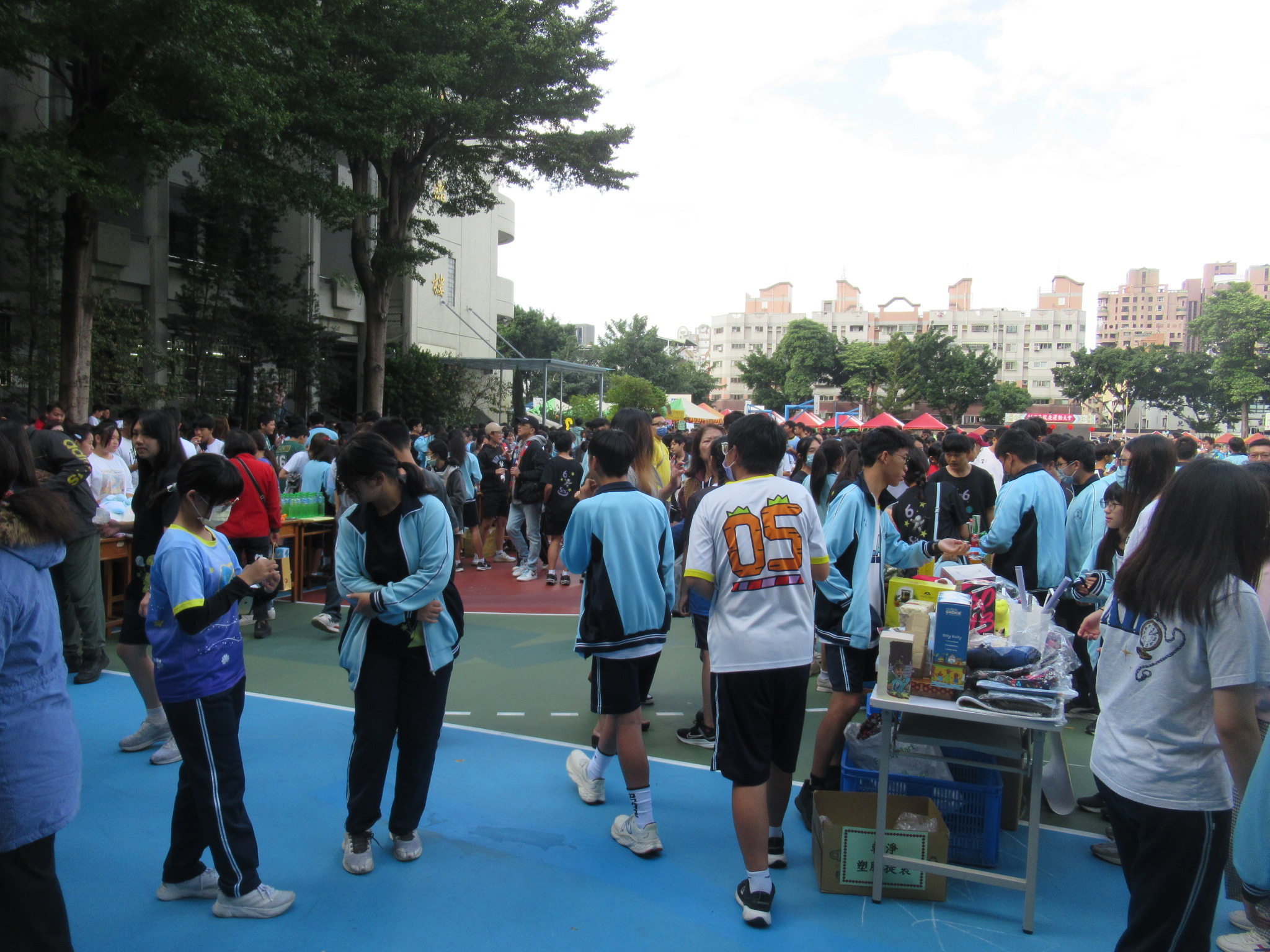 校慶活動除了運動會外,每班學生帶來家裡用不到的新品進行跳蚤市場義賣活動。