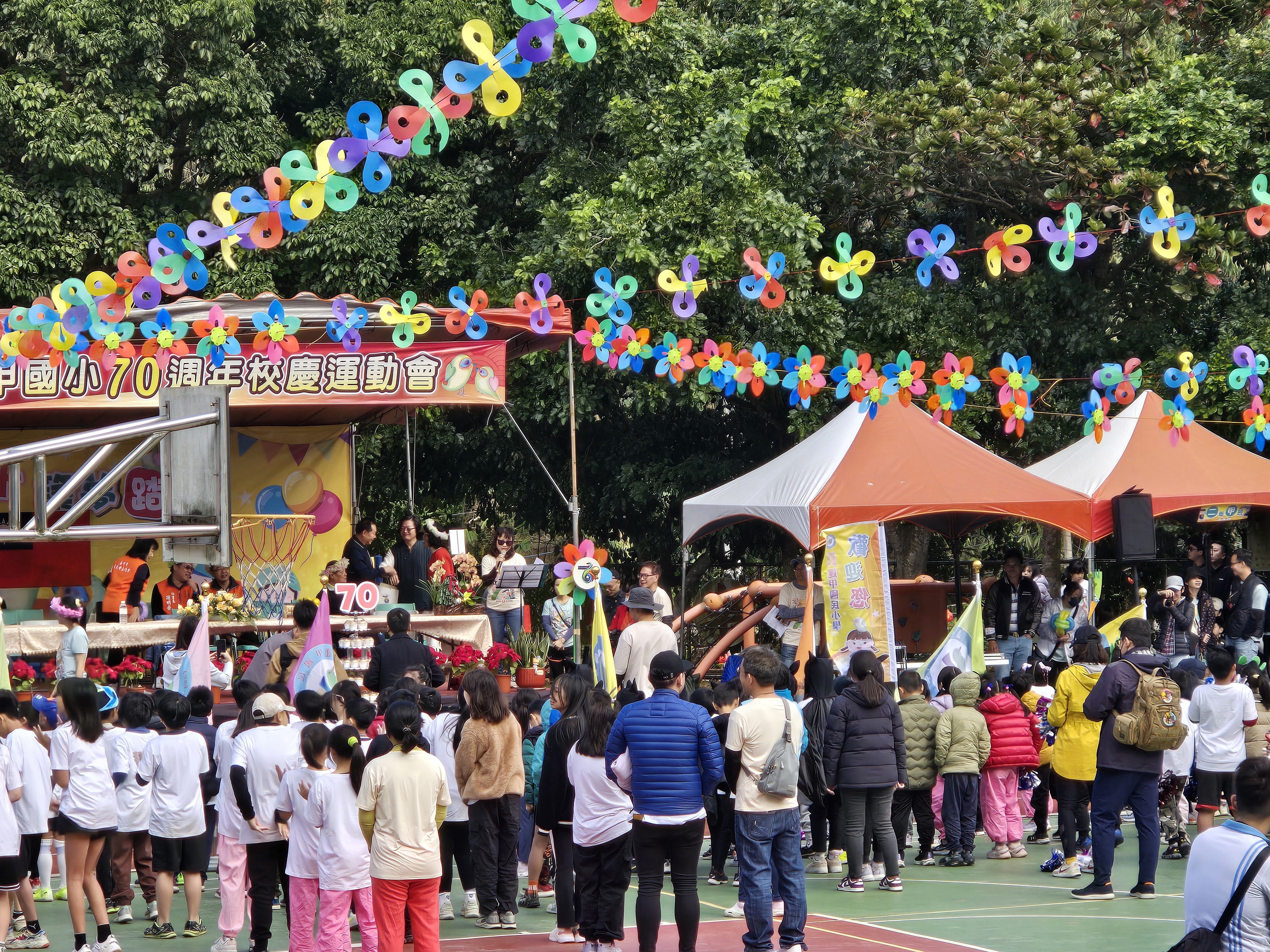 逢甲國小慶祝70週年校慶活動,操場上聚集學生及家長們,活動熱鬧滾滾。