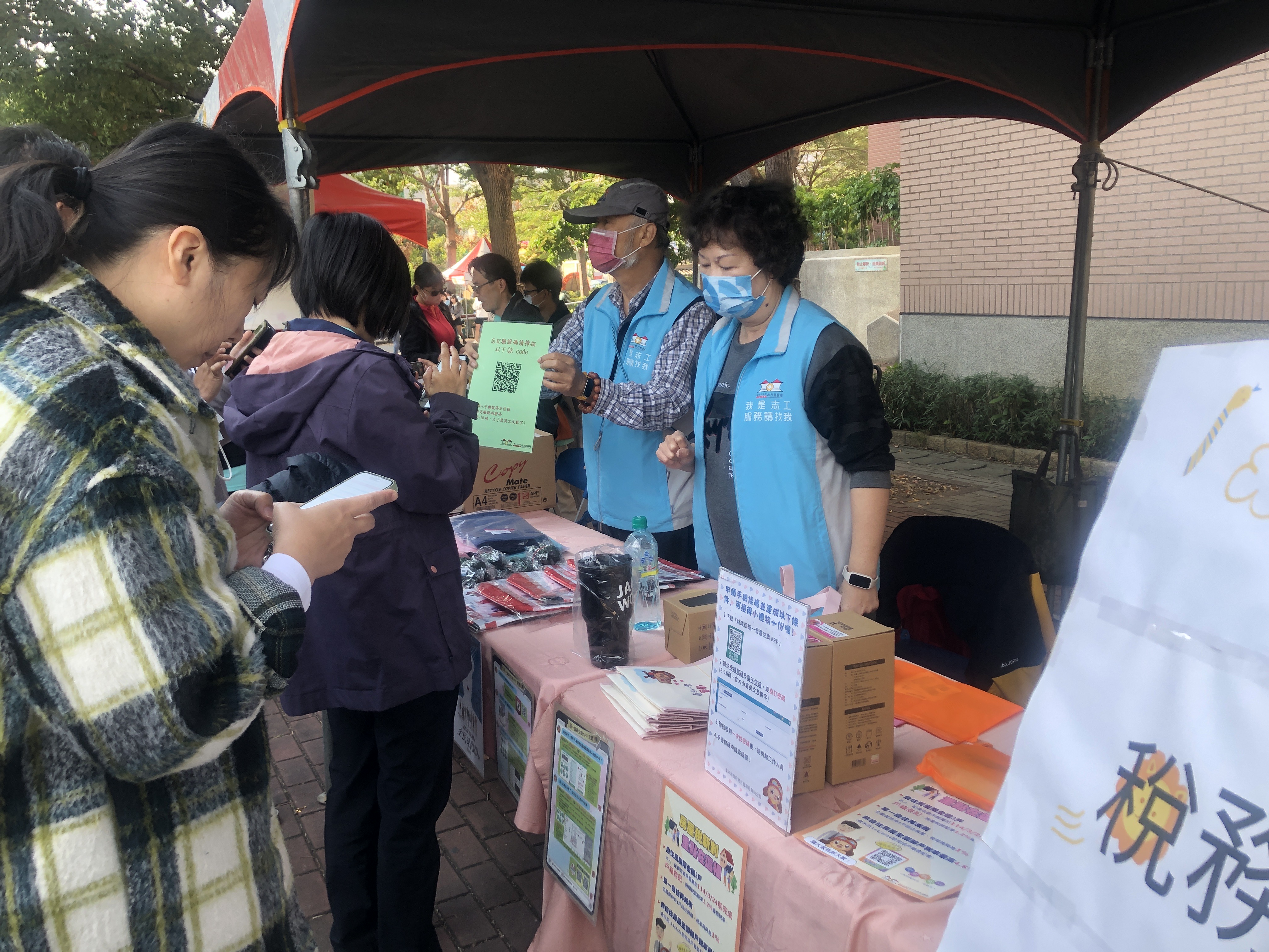 捐贈雲端發票民眾常有忘記驗證碼之問題,現場有專業的志工協助處理。