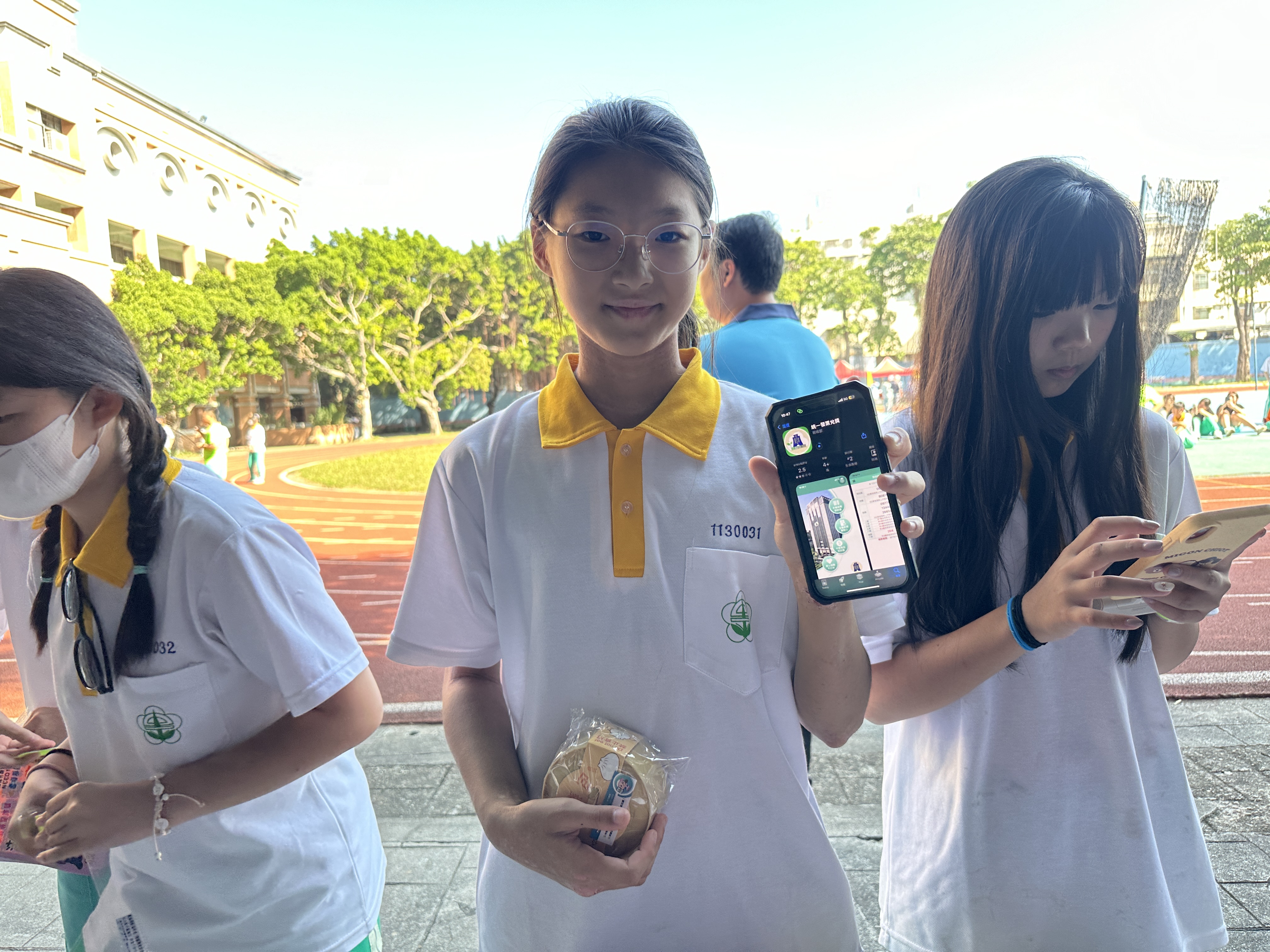 同學們相約來捐贈發票,工作人員順勢推廣雲端發票之便利性。