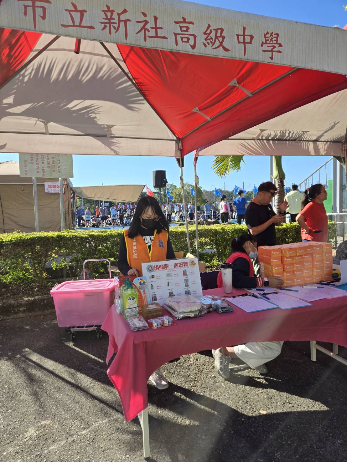 財政部中區國稅局東勢稽徵所共同參與「新社區新社高中國中部校慶活動」,向民眾推廣下載「統一發票兌獎APP」。
