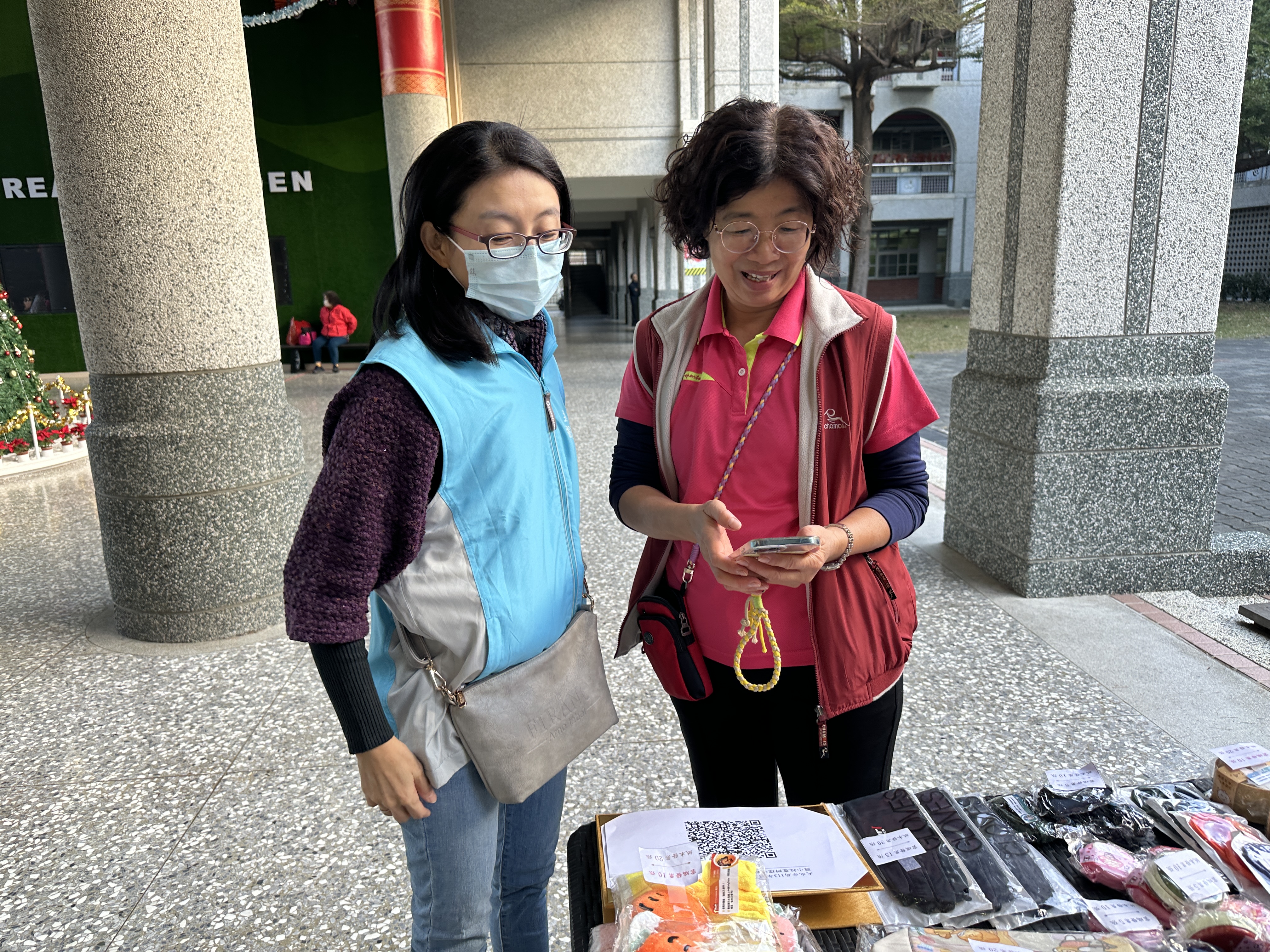 老師們相約來捐贈發票,工作人員順勢推廣雲端發票之便利性。