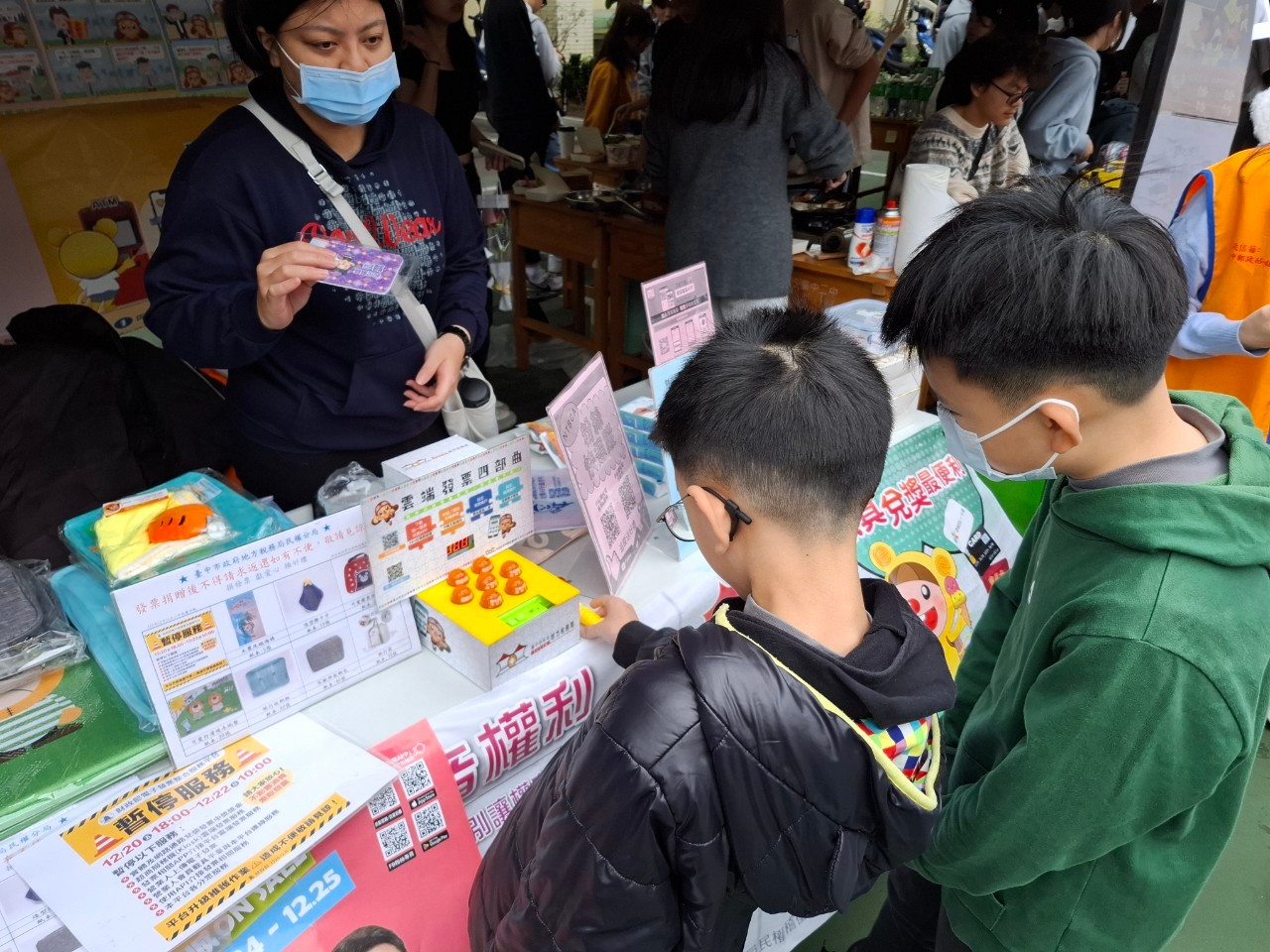 地稅局與中區國稅局民權稽徵所共同設攤,現場張貼兩性平等、政風廉潔及國防等相關宣傳海報,並加強宣導房屋稅條例新制(差別稅率2.0)自113年7月1日起施行。