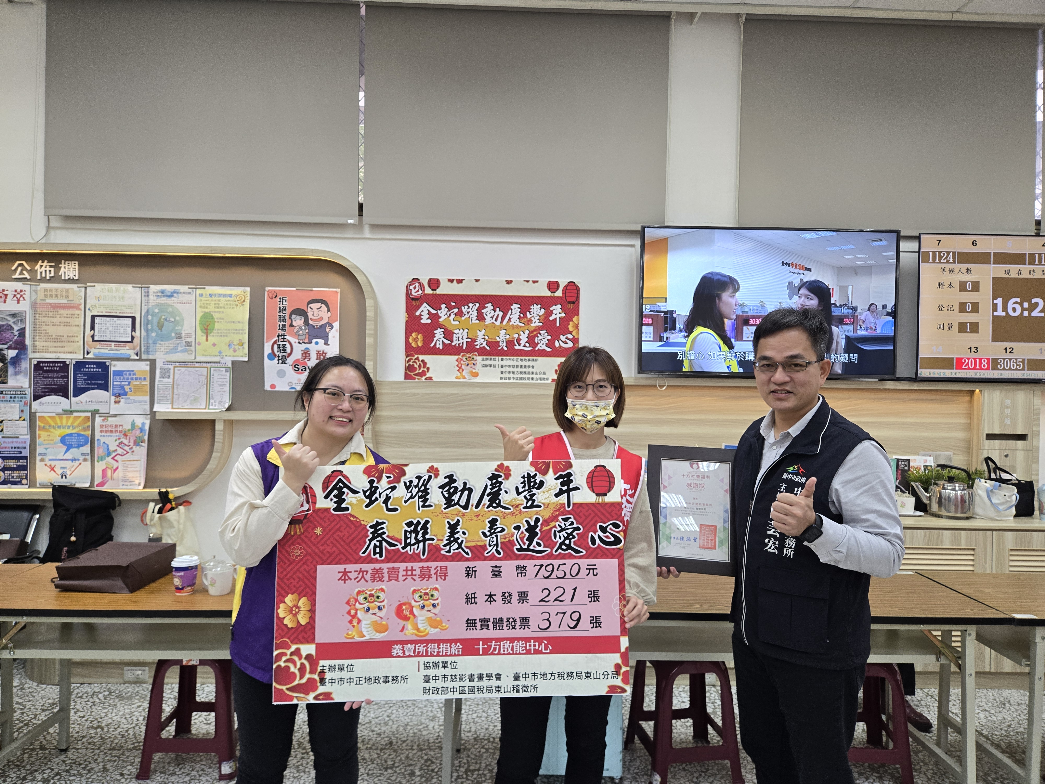 東山分局114年1月7日配合中正地政事務所「金蛇躍動慶豐年 春聯義賣送愛心」辦理租稅宣導活動