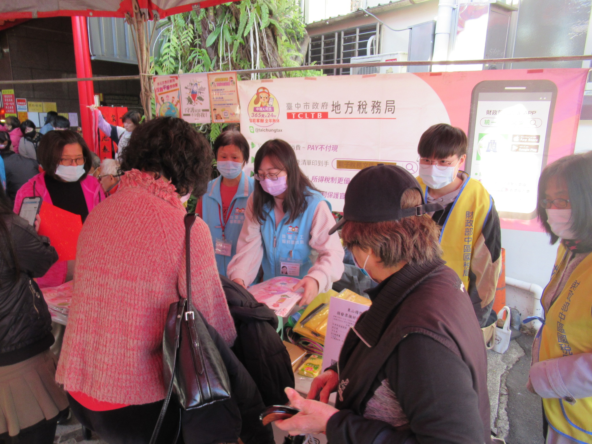 本分局青年與高齡志工共同參與支援宣導活動,走出戶外,向民眾傳達稅務。
