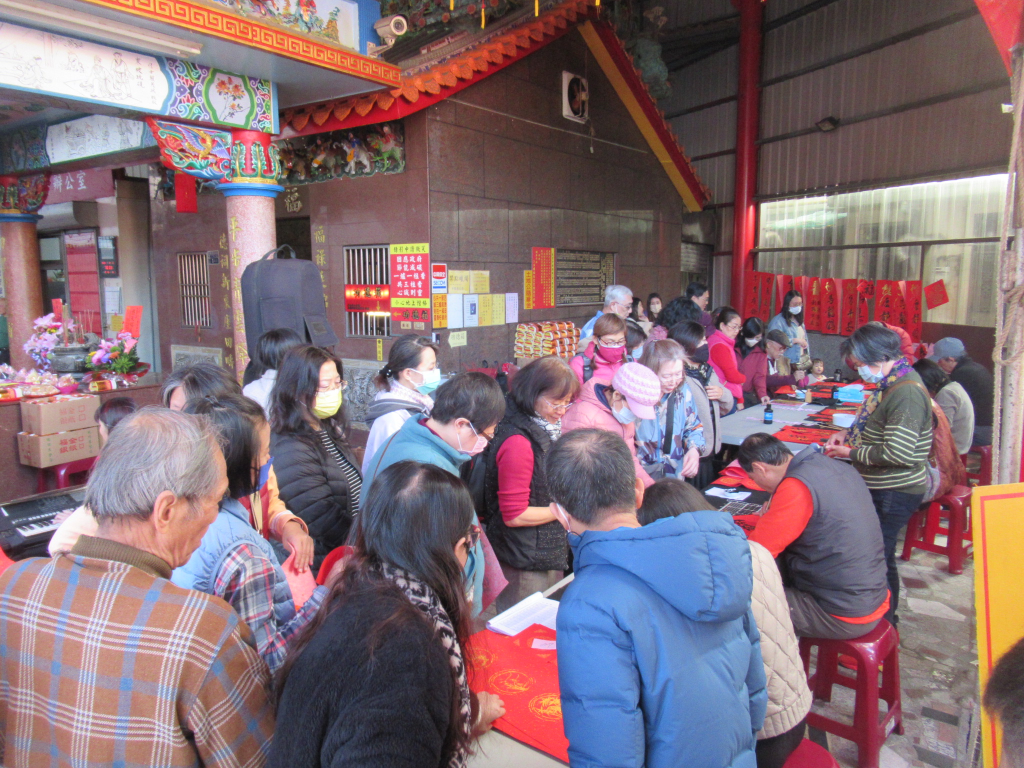 現場春聯揮毫活動熱鬧滾滾,民眾踴躍參加活動拿春聯佈置家裡過好年。