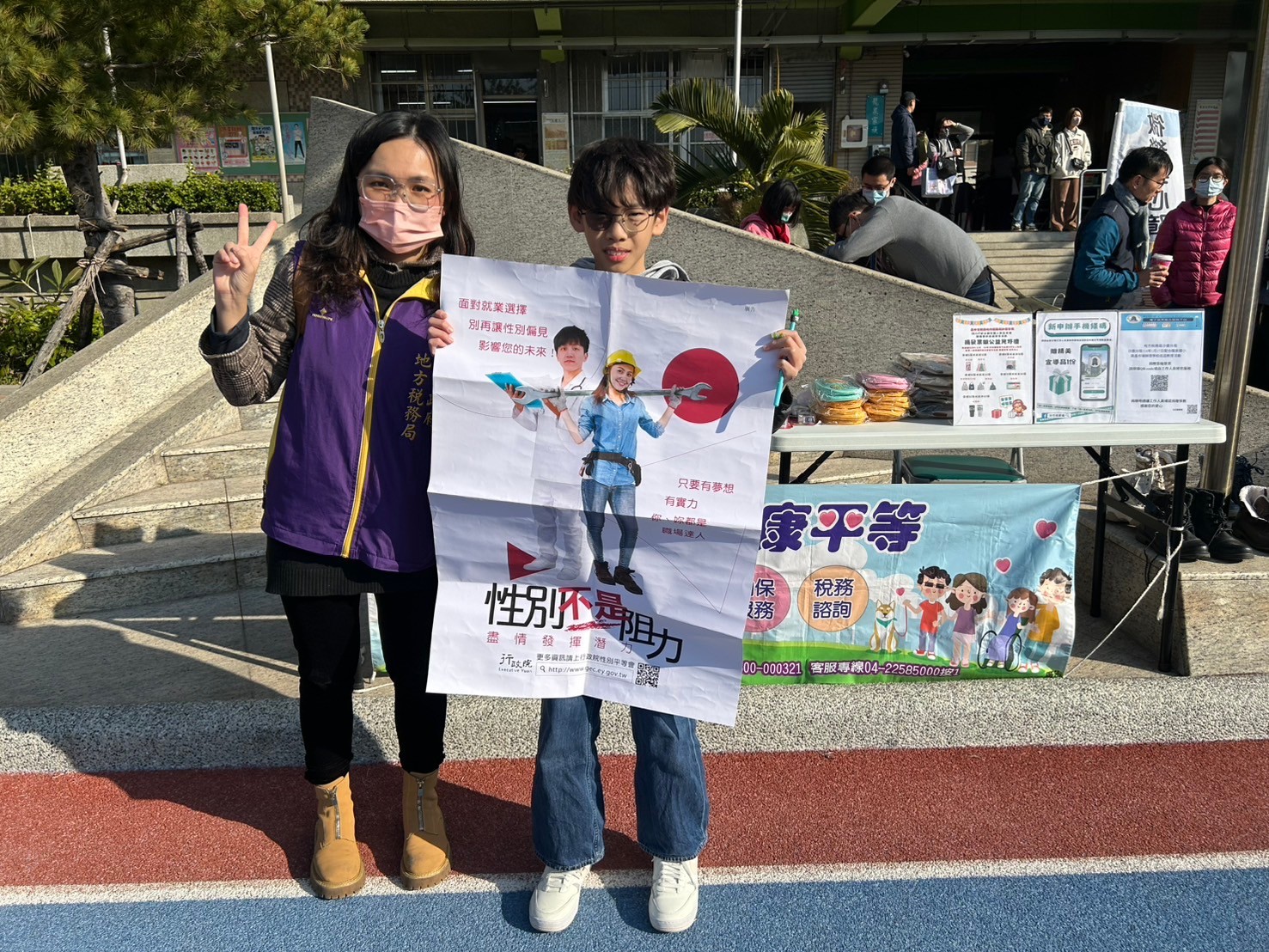 宣導同仁藉由性別平等宣傳海報向同學宣導兩性平等的重要性。