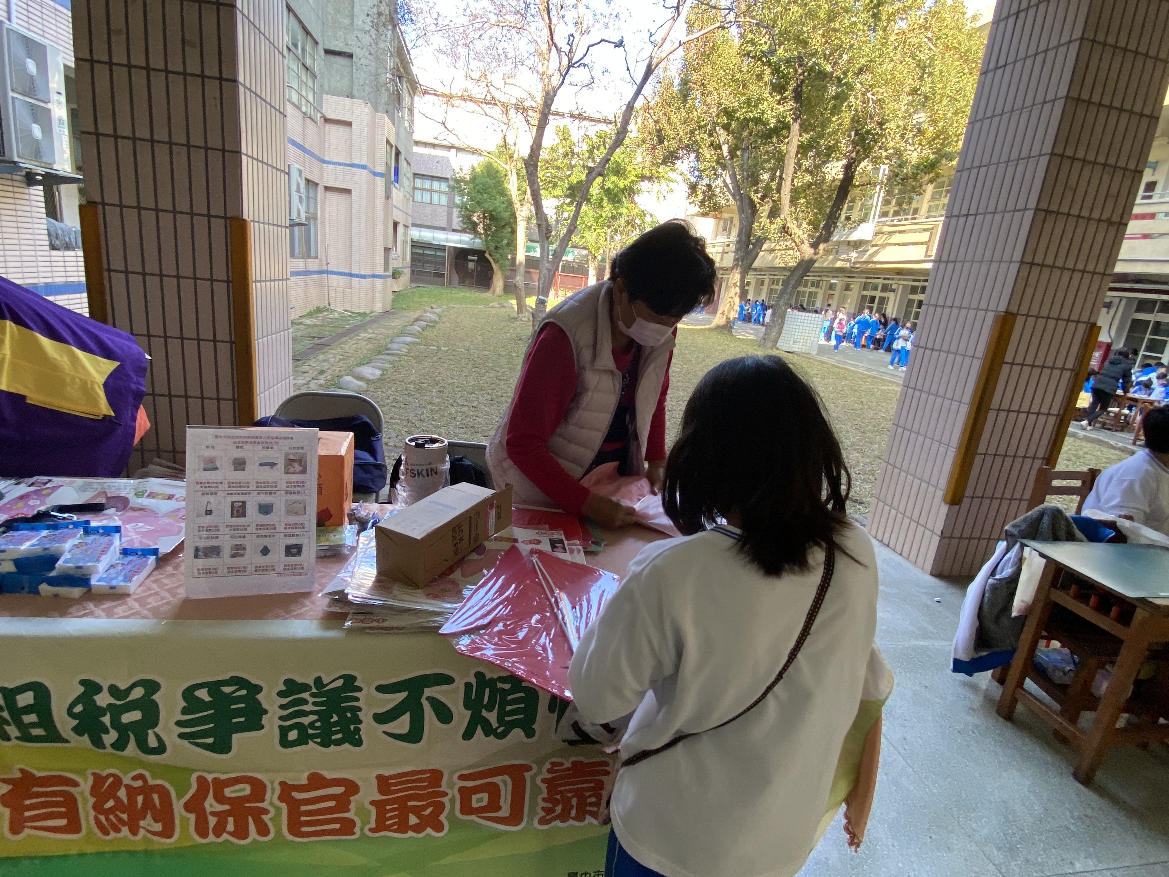 豐原分局114年1月20日配合臺中市后里區內埔國小跳蚤市場辦理租稅宣導活動