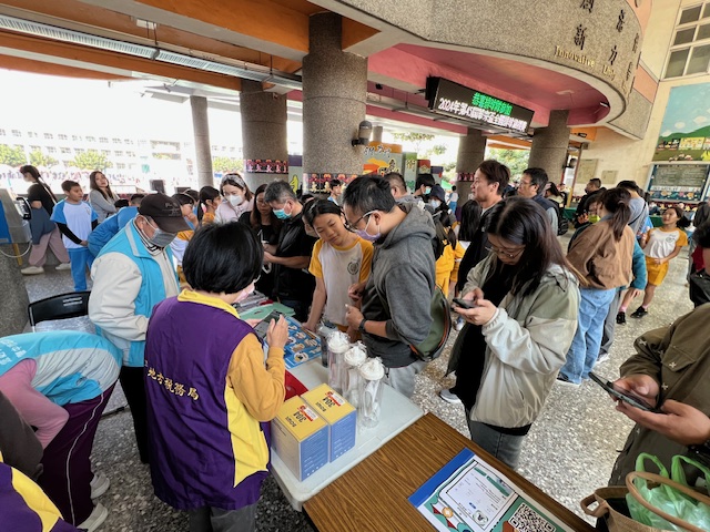 現場不只協助民眾捐贈雲端發票兌換宣導品,也輔導在場朋友下載財政部統一發票對獎APP,並協助設定領獎帳戶,對獎領獎一次搞定