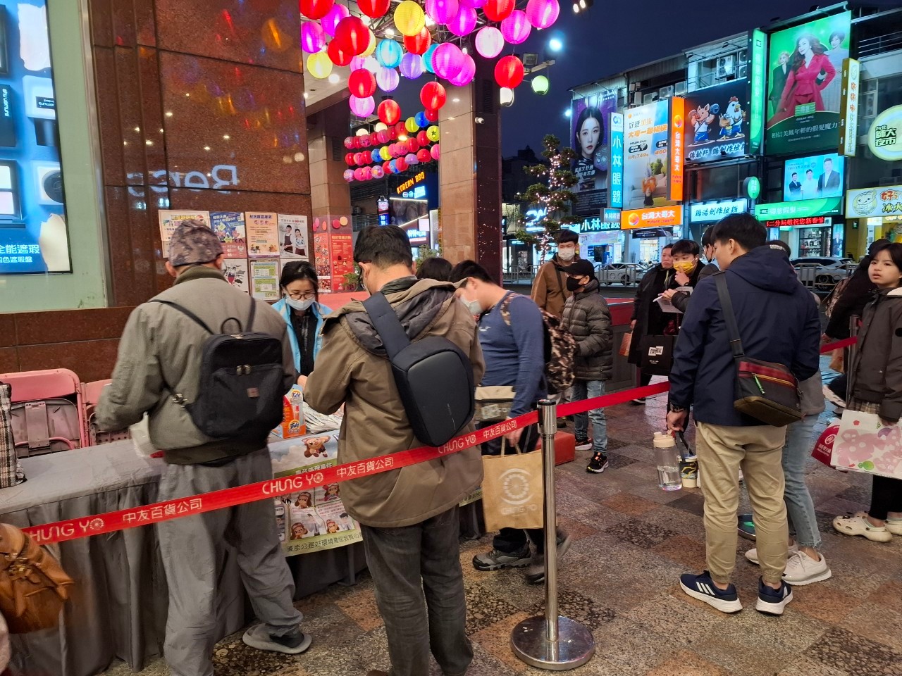 中友百貨慶元宵活動現場,民眾排隊捐發票兌換蛇年小提燈。
