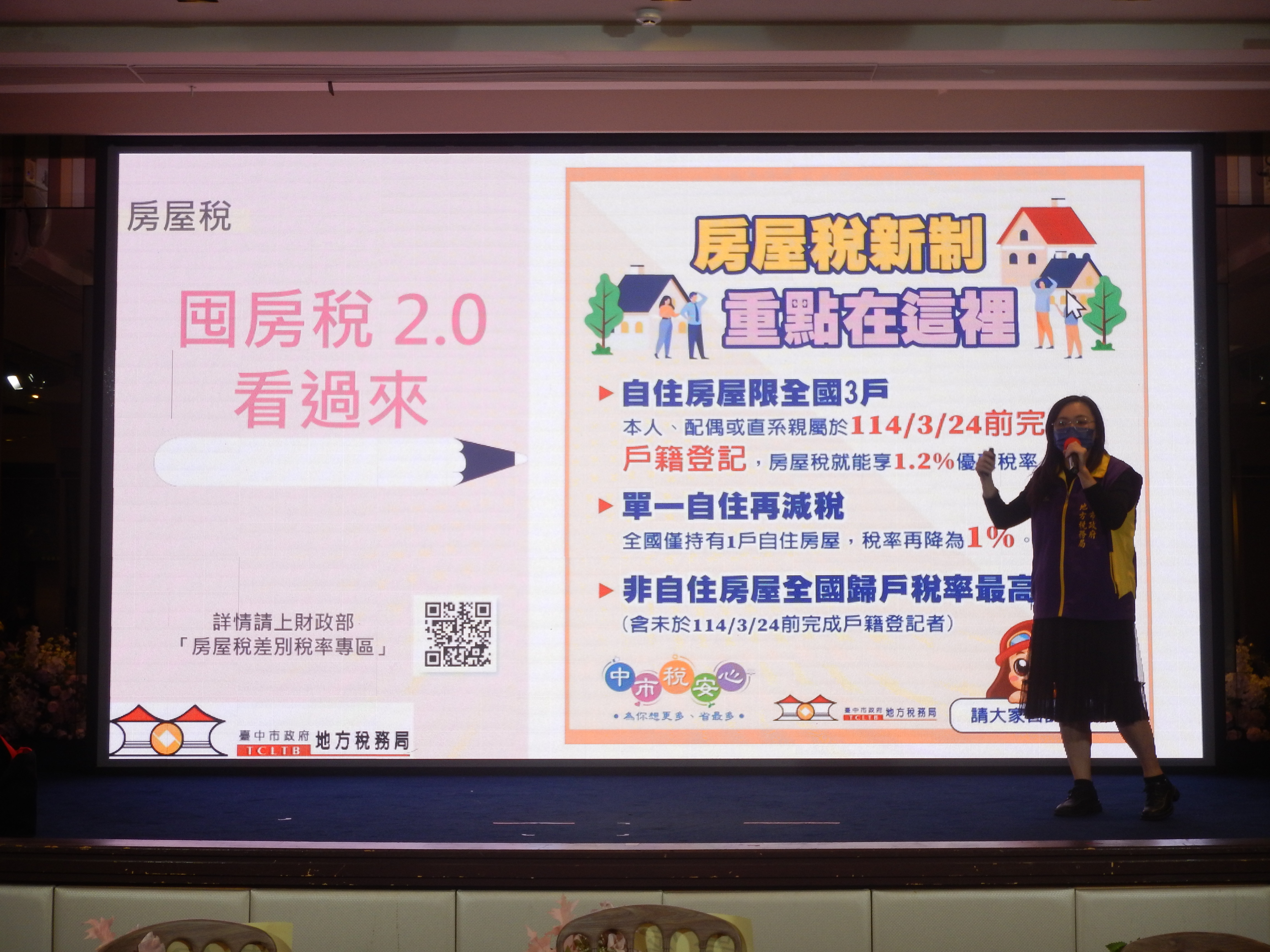 講師加強說明適用自住用稅率課徵房屋稅的條件。