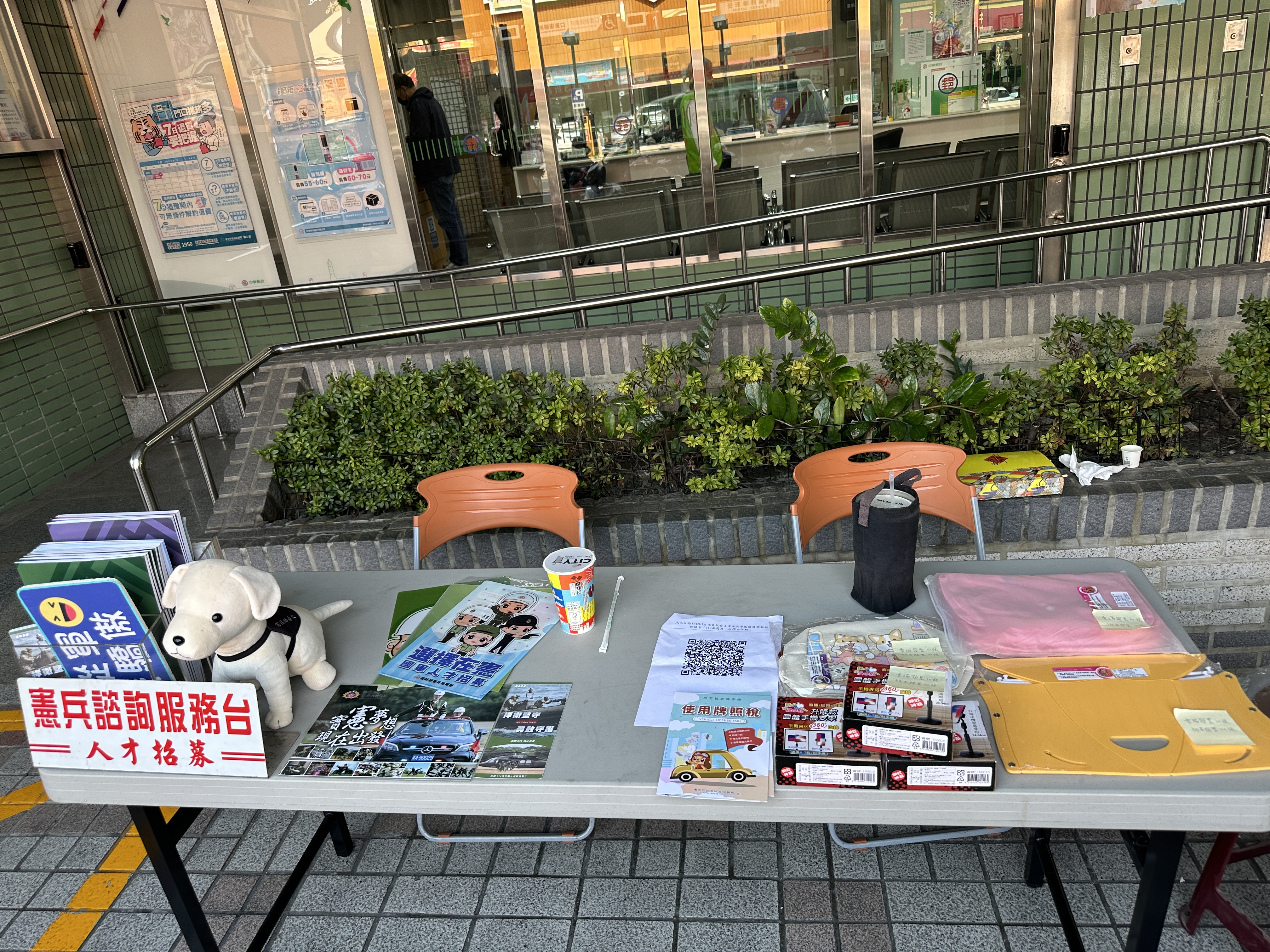 本分局與憲兵第203指揮部共同設攤,民眾可同時諮詢雲端發票及國軍招募等問題。