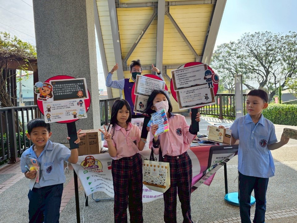東海國小慶祝兒童節舉辦園遊會,文心團隊受邀辦理租稅宣導,現場許多益智闖關遊戲攤位,同學們共同討論、合作解決問題,場面熱鬧。