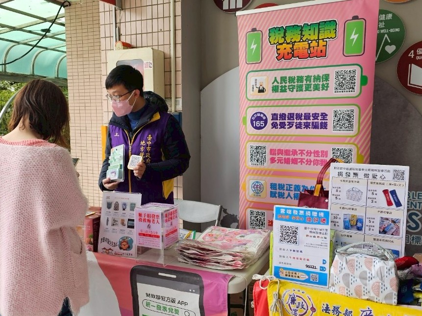 國稅局一起參與本次活動,在稅務知識充電站前攜手宣導,民眾不僅有精美贈品可兌換,國稅、地方稅的問題也都能一次滿足。