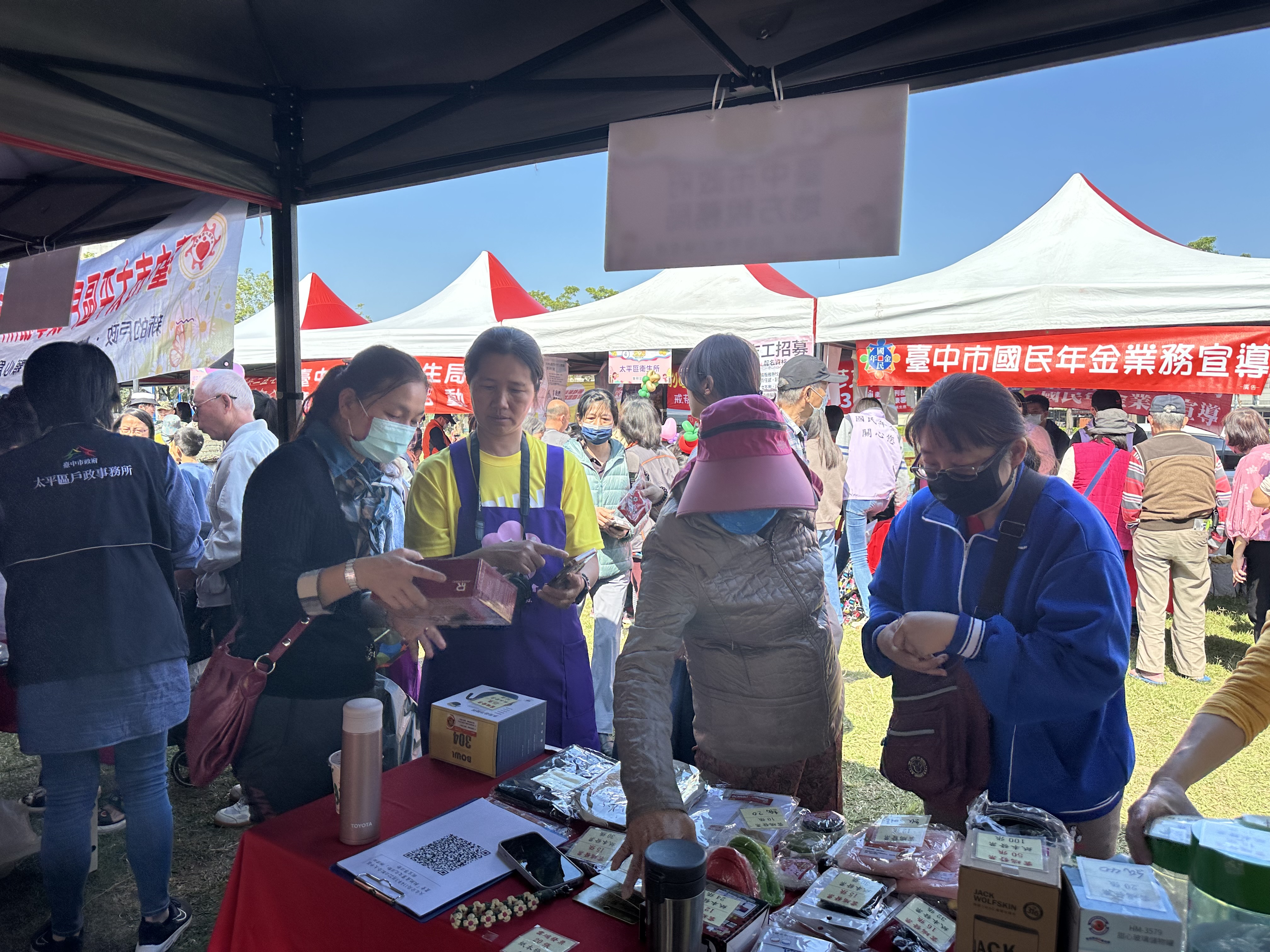 現場宣導品品項眾多,吸引民眾駐足詢問。