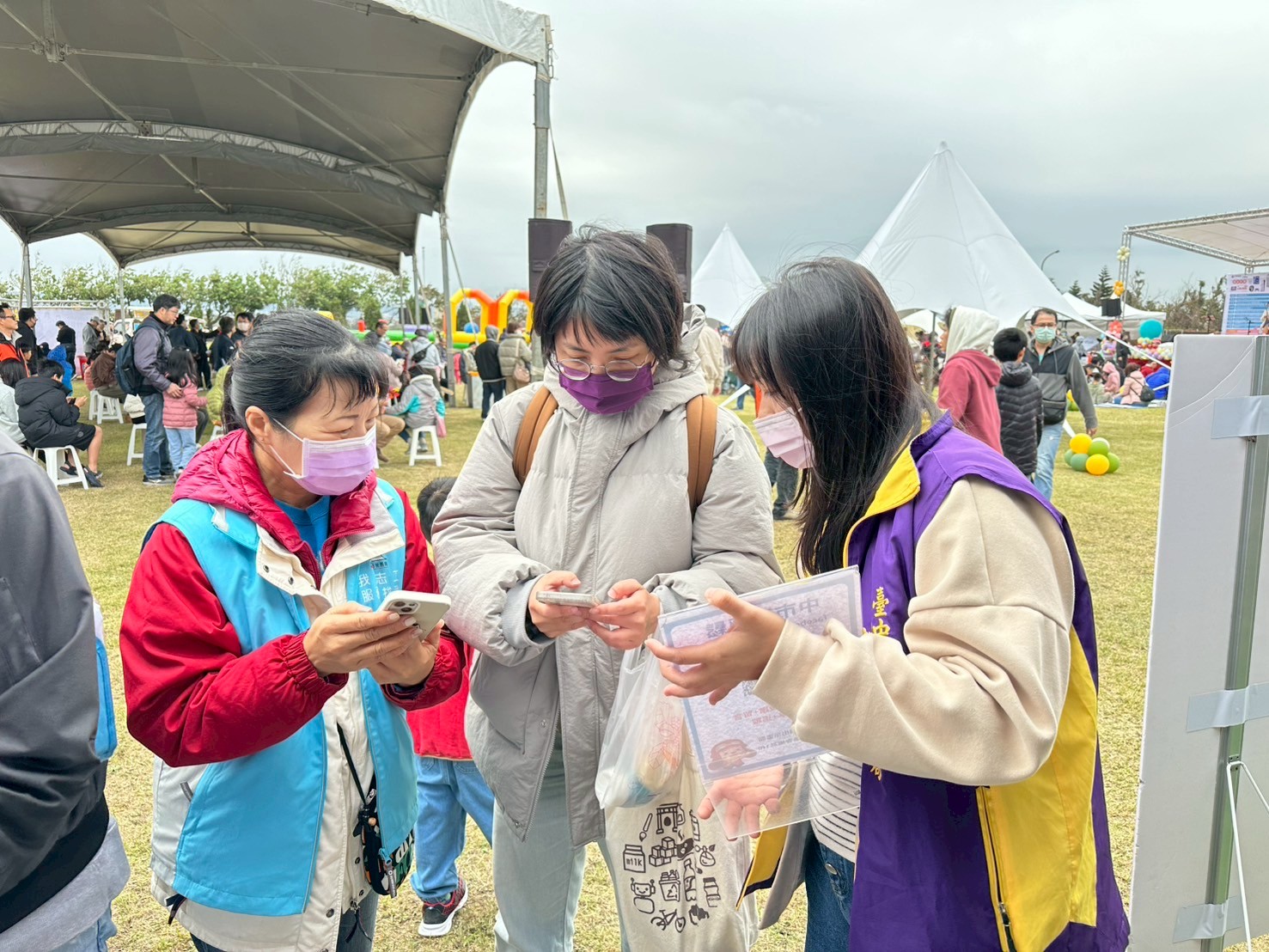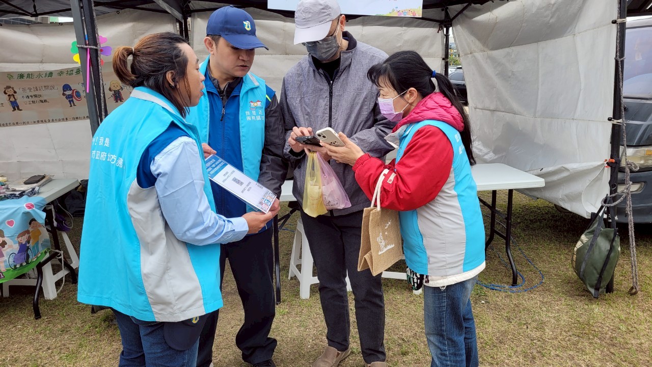 宣導同仁及志工向民眾說明捐贈雲端發票操作流程。