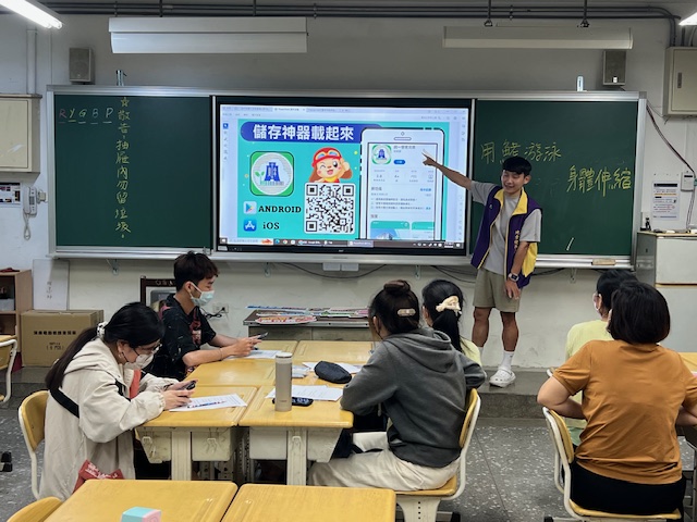 鼓勵在場學員還沒下載統一發票兌獎APP的學員可以立即下載,講師也帶學員一步一步註冊申辦手機條碼。