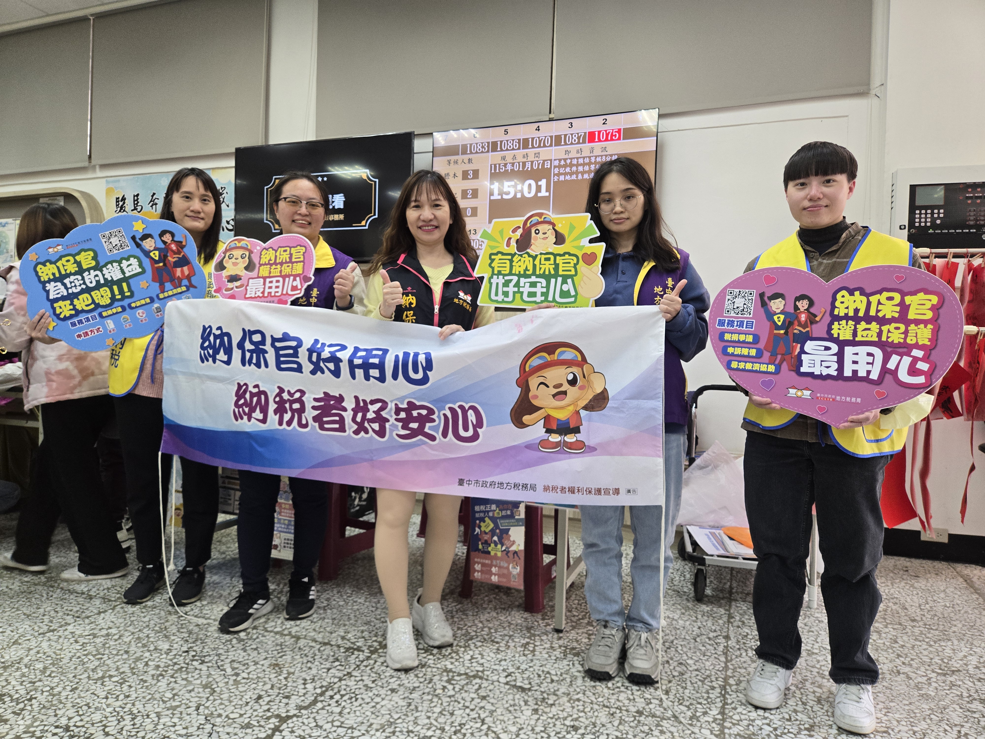 懸掛納稅者權利保護法、張貼性別主流化、全民國防文宣,擴大宣傳效益。