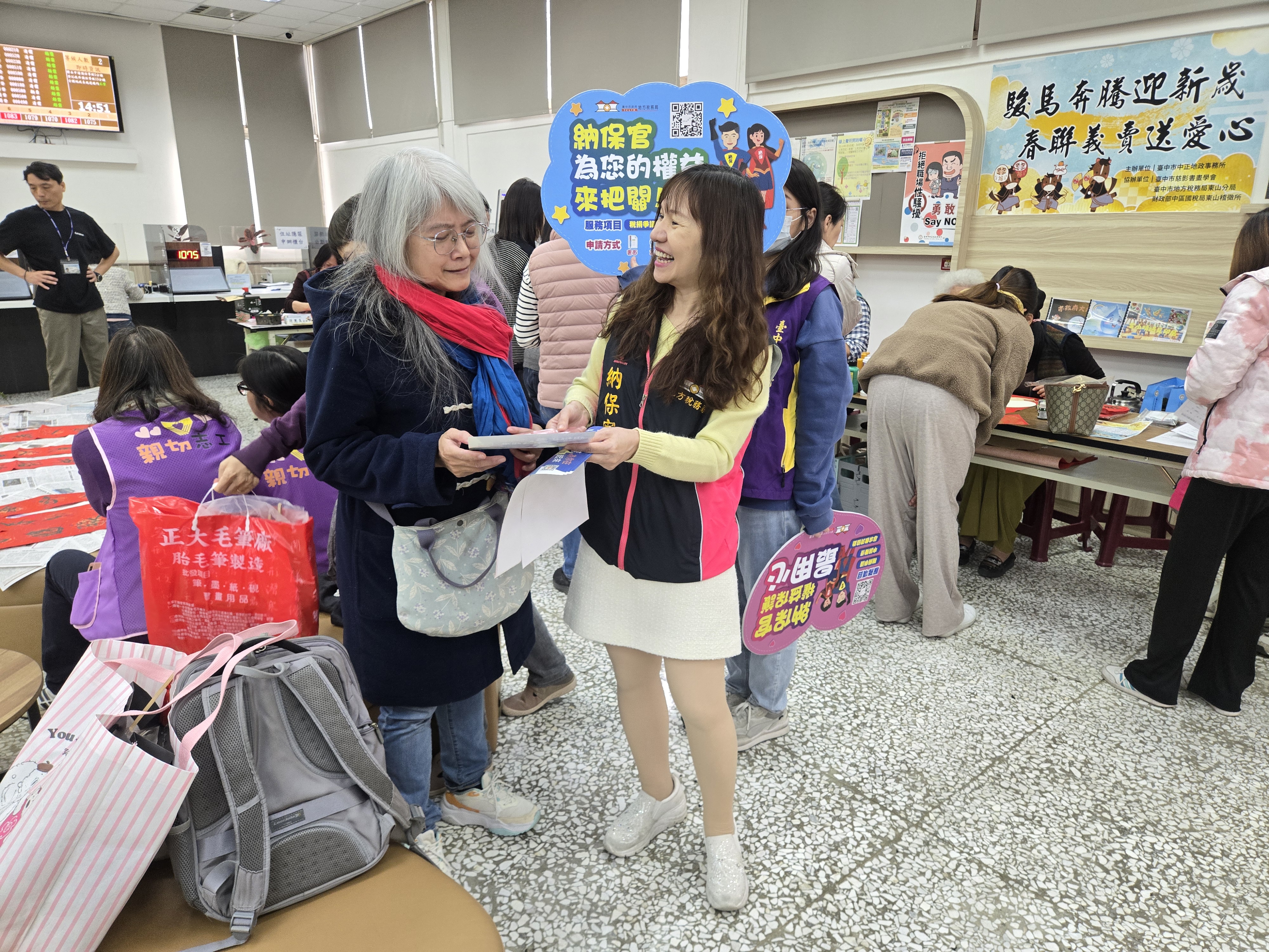 東山分局115年1月7日配合中正地政事務所「駿馬奔騰迎新歲 春聯義賣送愛心」辦理租稅宣導活動