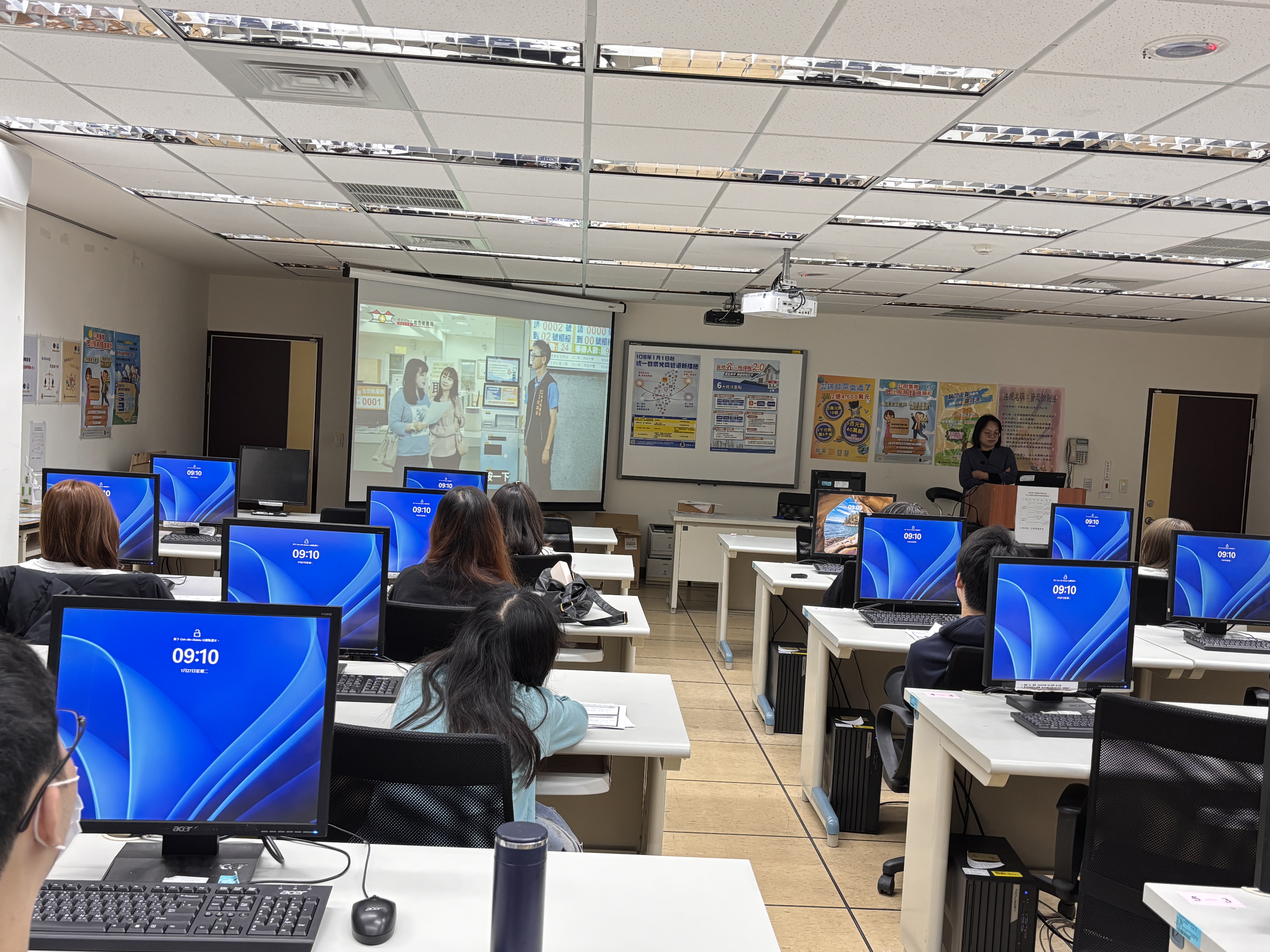 播放本局自製影片介紹便民措施~操作UTax(Your Tax)自動櫃員機核發證件,可縮短民眾洽公時間,有效提升便民服務。